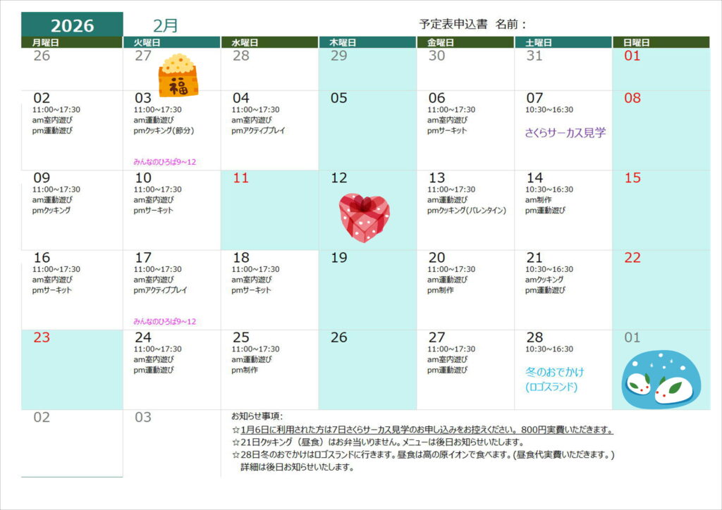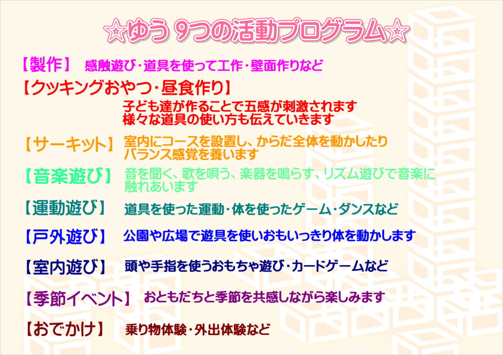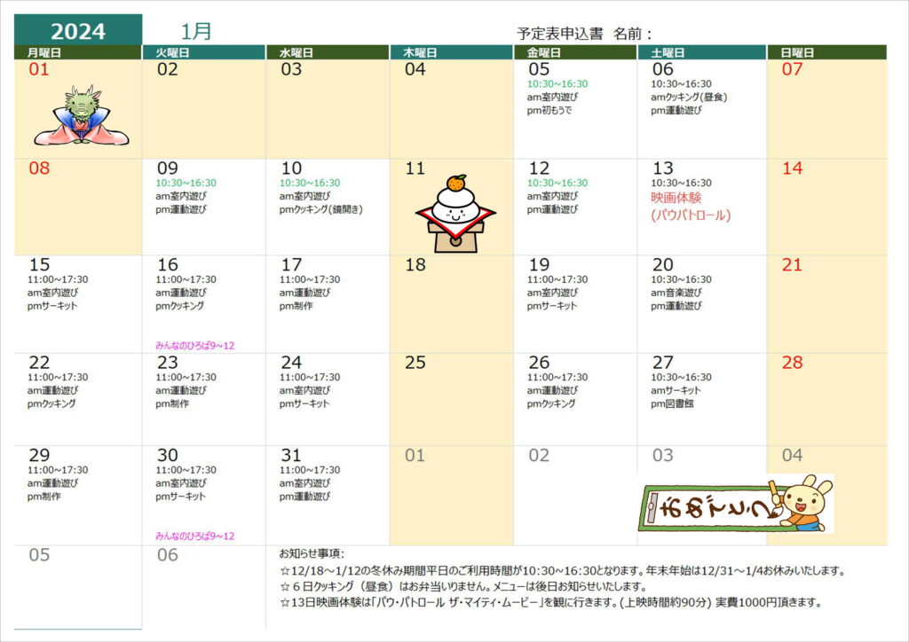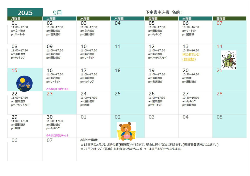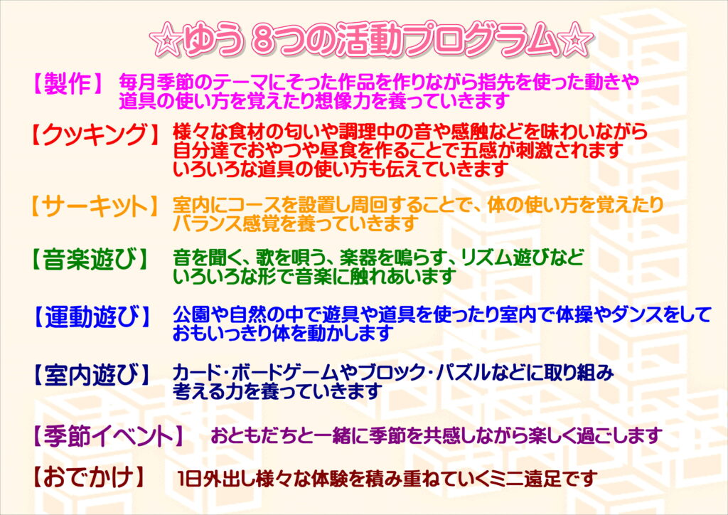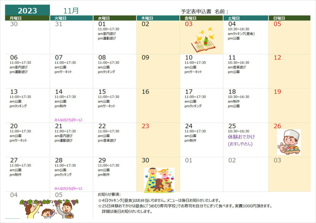 7月19日(火)クッキング(昼食)➡クッキング(おやつ)に変更します。
