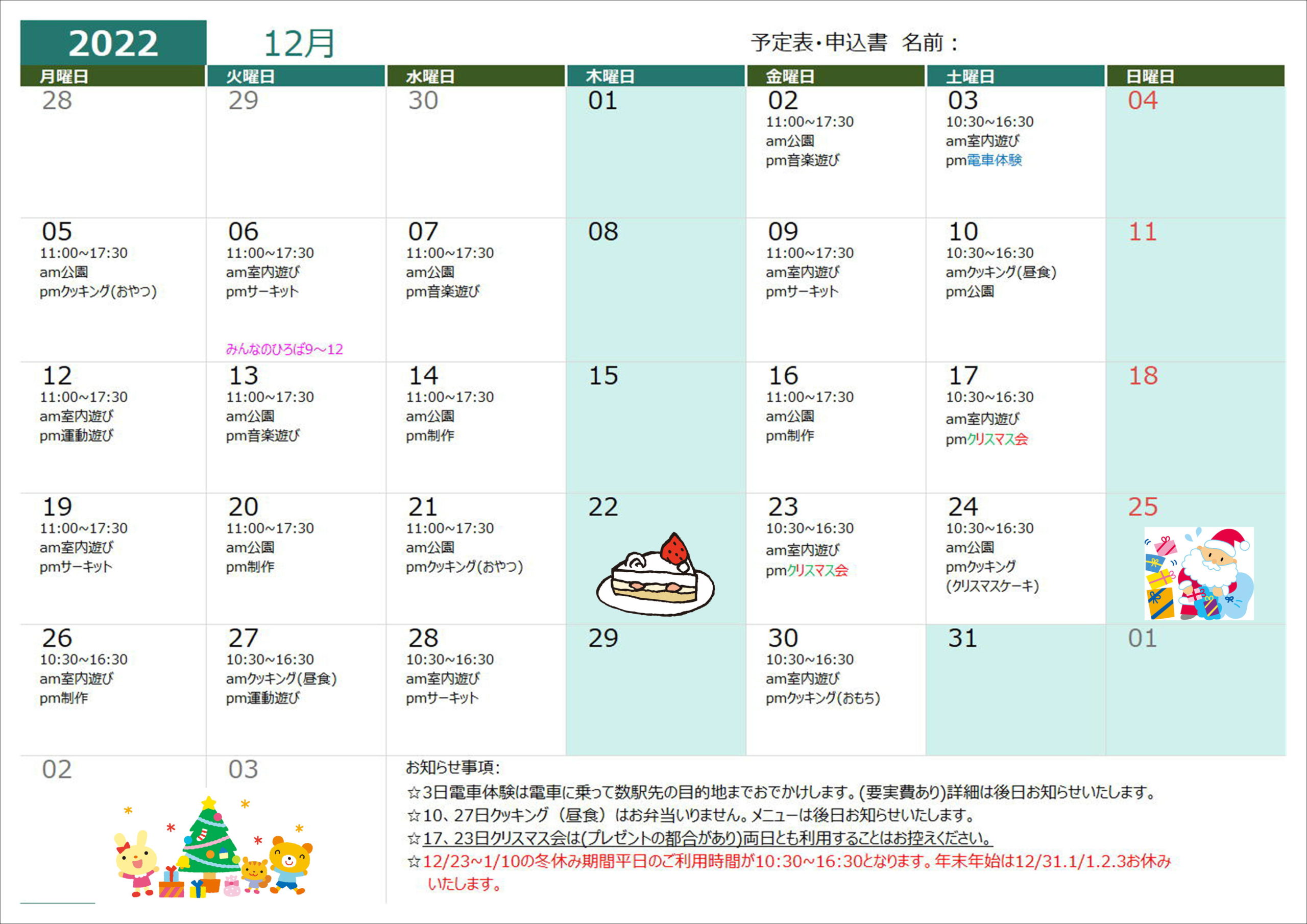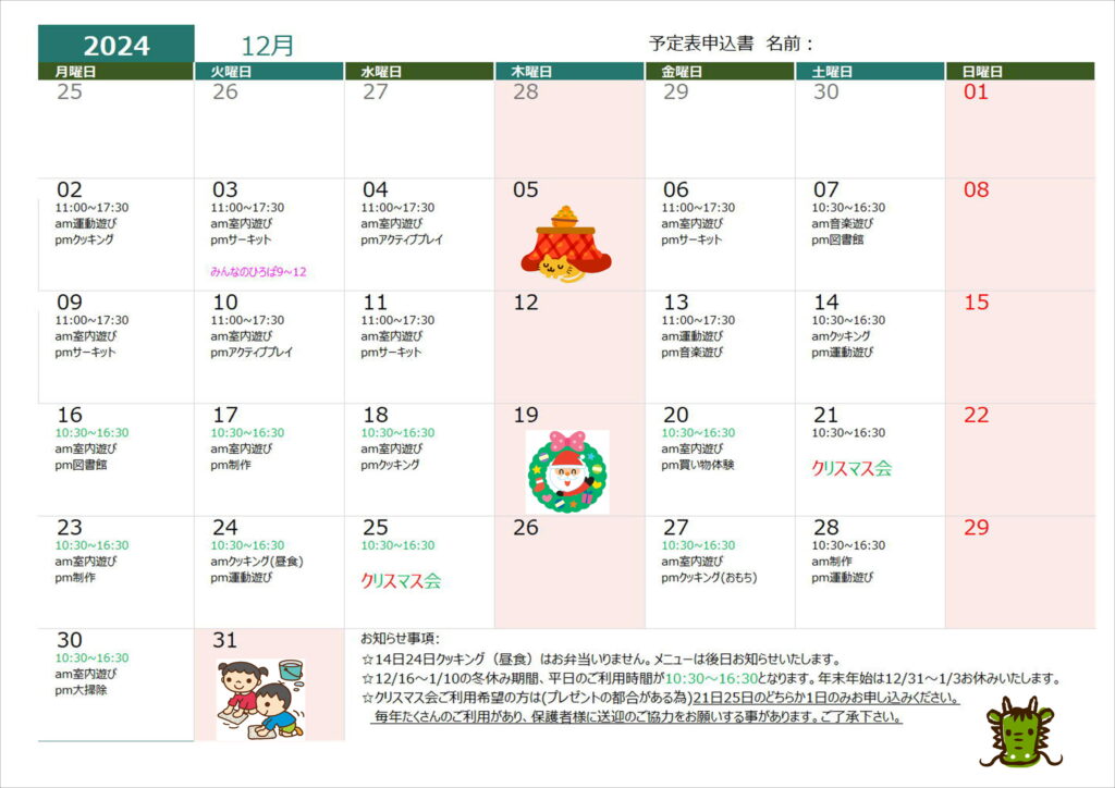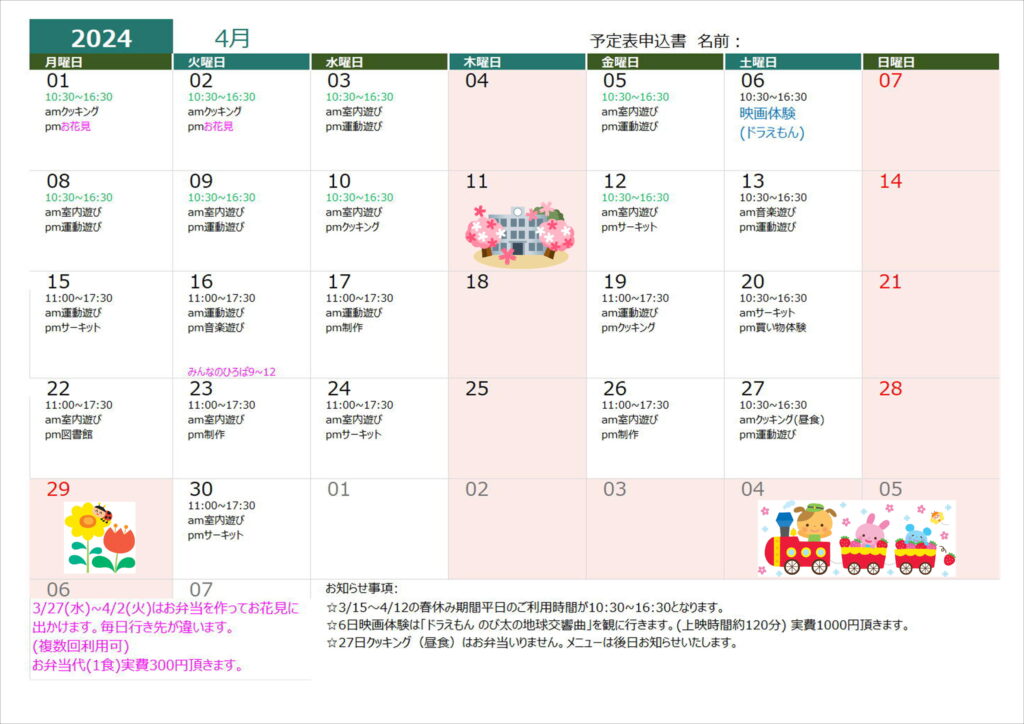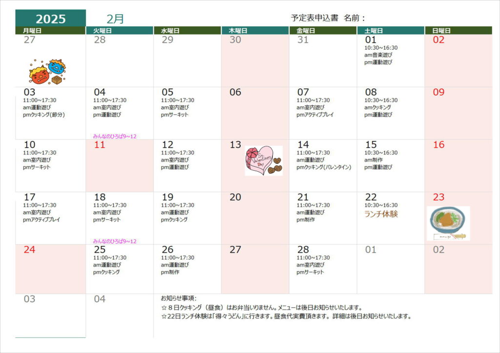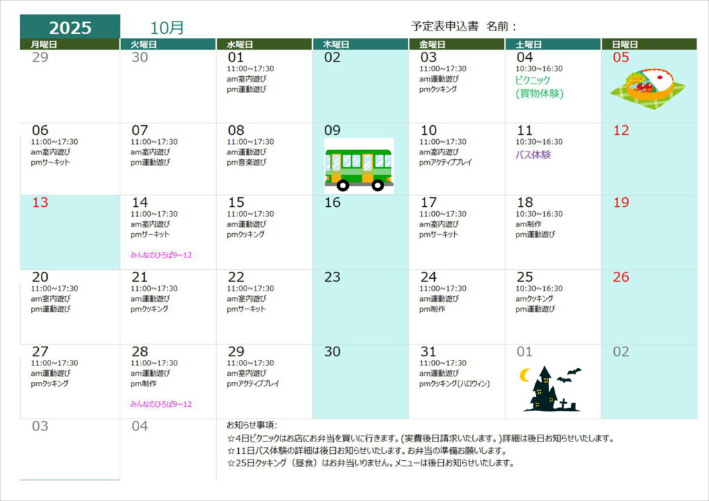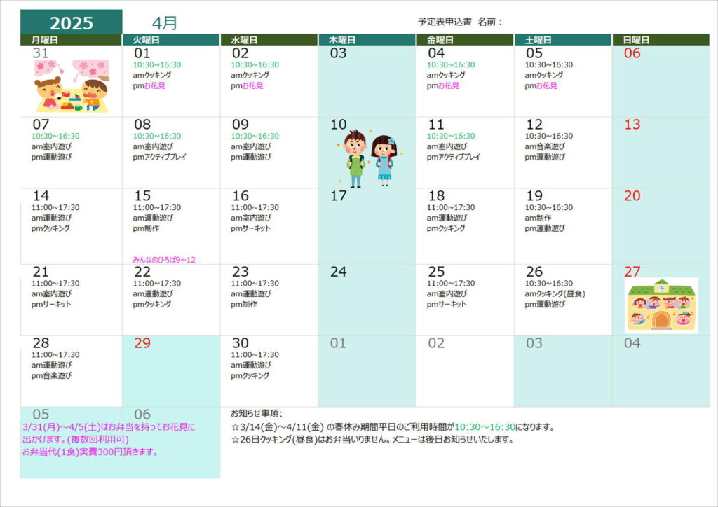 7月19日(火)クッキング(昼食)➡クッキング(おやつ)に変更します。