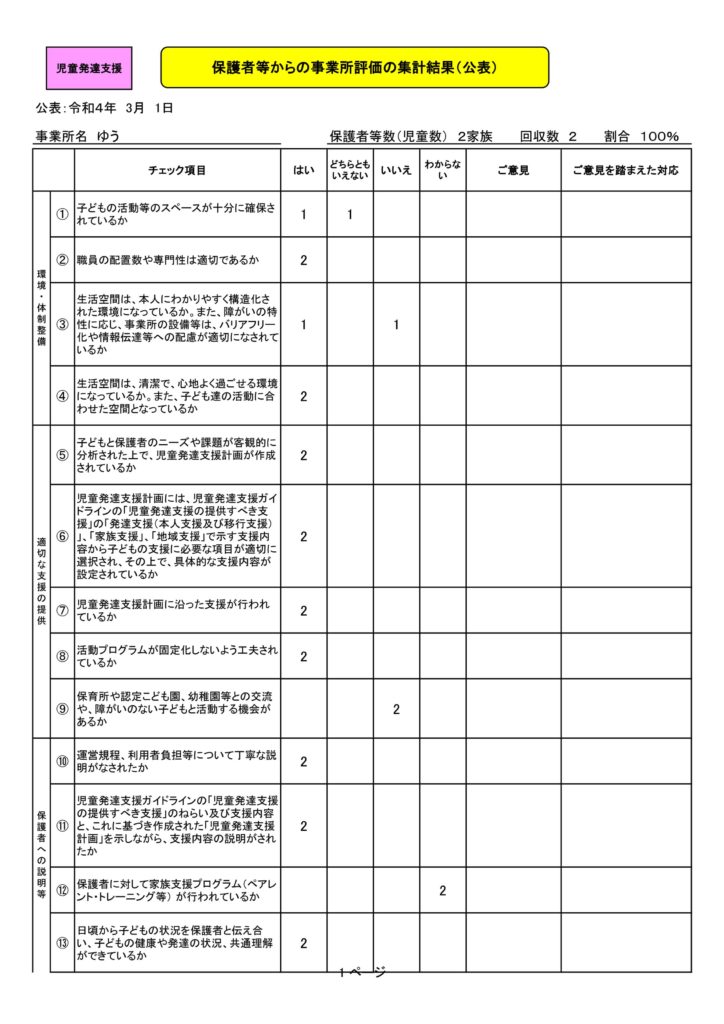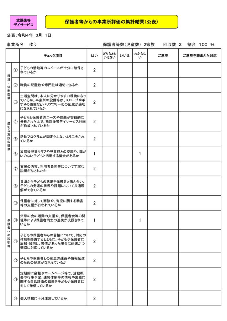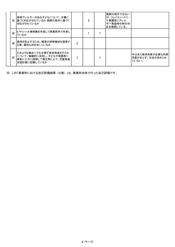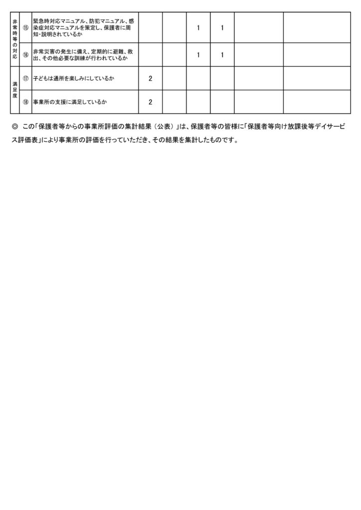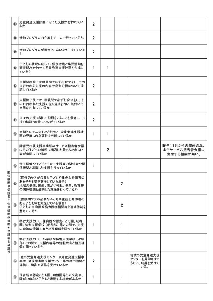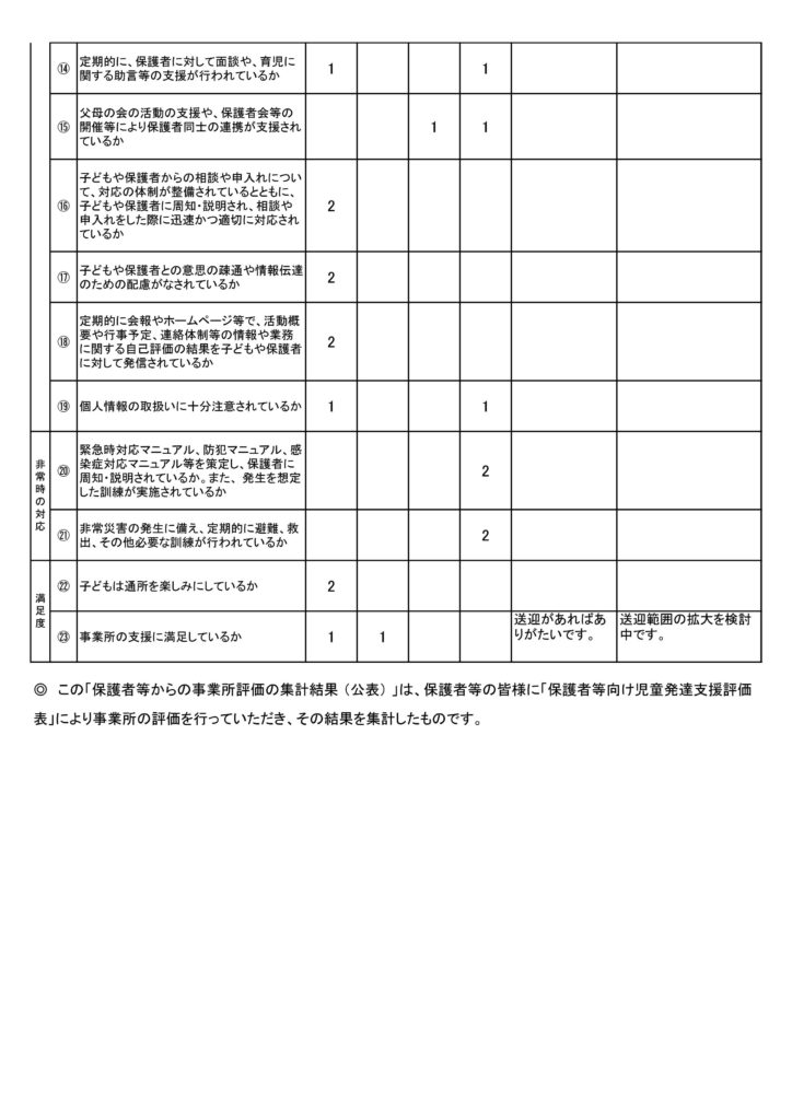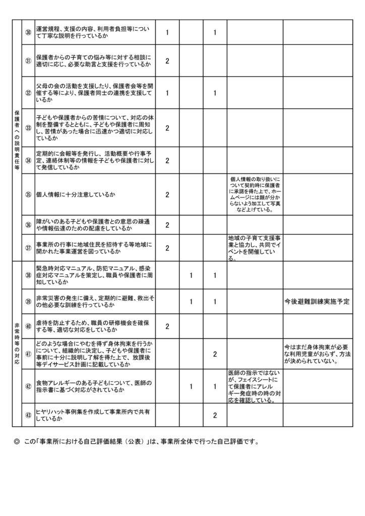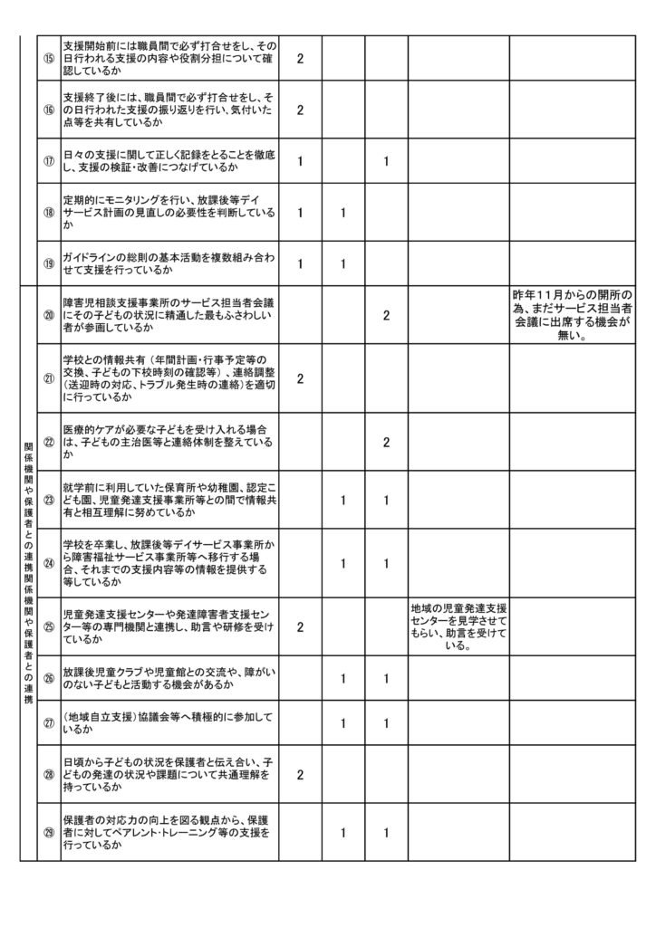 ※令和3年11月より事業所開始ですので、まだ評価にいたらない箇所があります。ご了承ください。