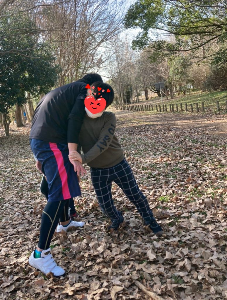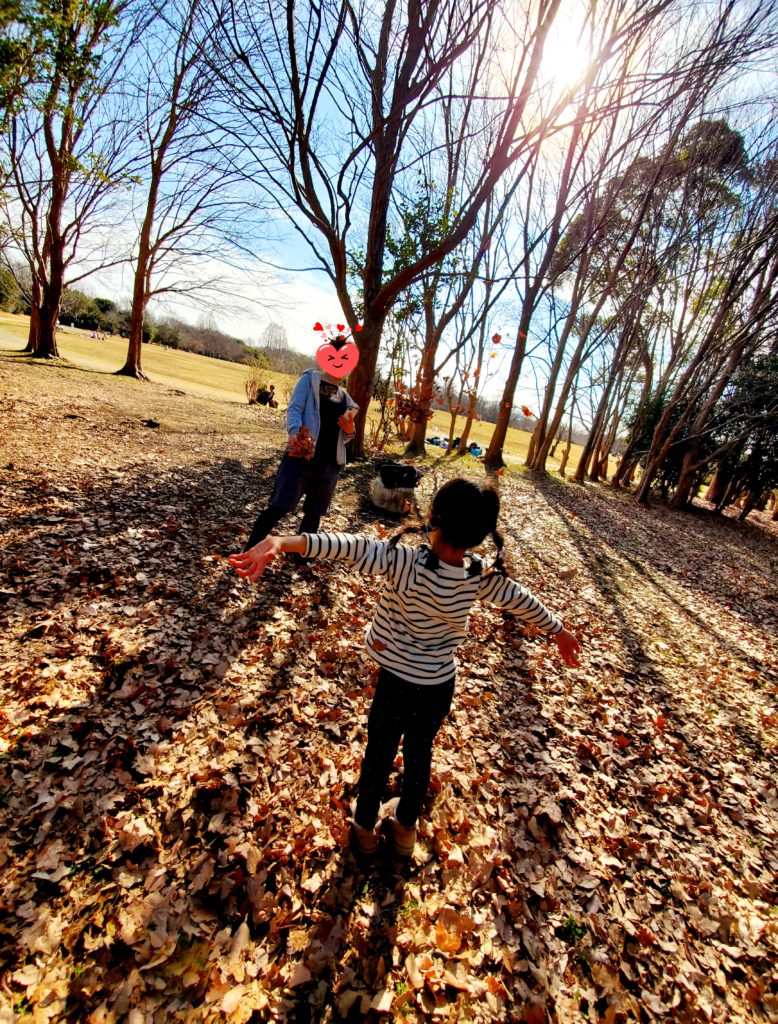 公園にも出かけて複合遊具でたくさん体を動かした後は、ふかふか落ち葉のじゅうたんで相撲やたくさん集めた落ち葉を空高く舞い上げて遊びました(#^^#)
