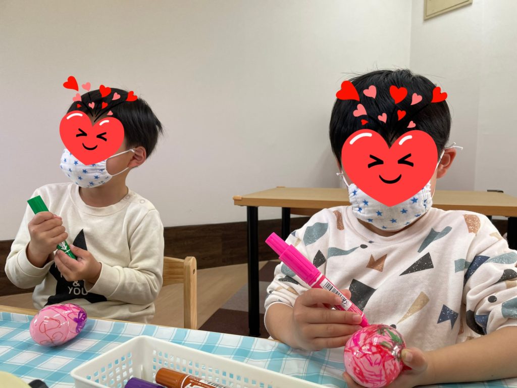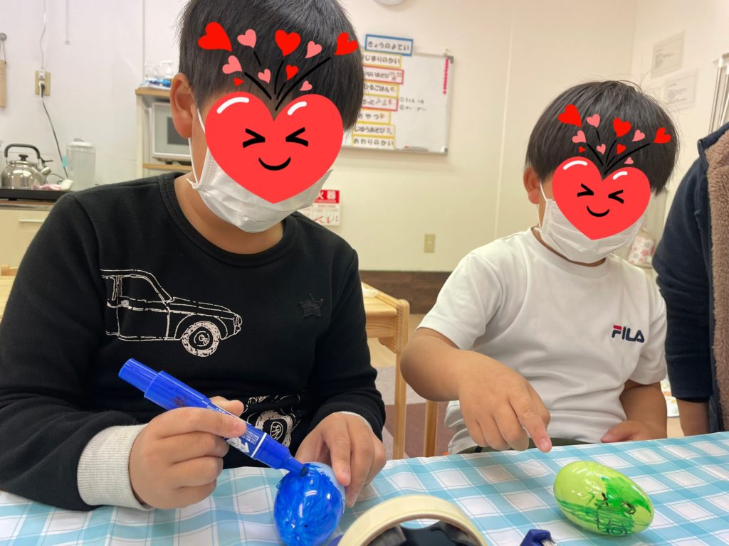 エッグマラカスを作りました😄卵型の容器の中に小豆を入れてシャカシャカシャカ♪お米を入れてシャカシャカシャカ♪細かく切ったストローを入れてシャカシャカシャカ♪音の違いわかるかなぁ?どれを入れるか決めたら色を塗って、みんなでひとつの曲を元気に歌いながらシャカシャカ演奏してくれましたよ~(^^♪