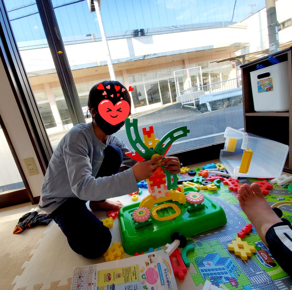 ブロックで風車作ってるよ~😀