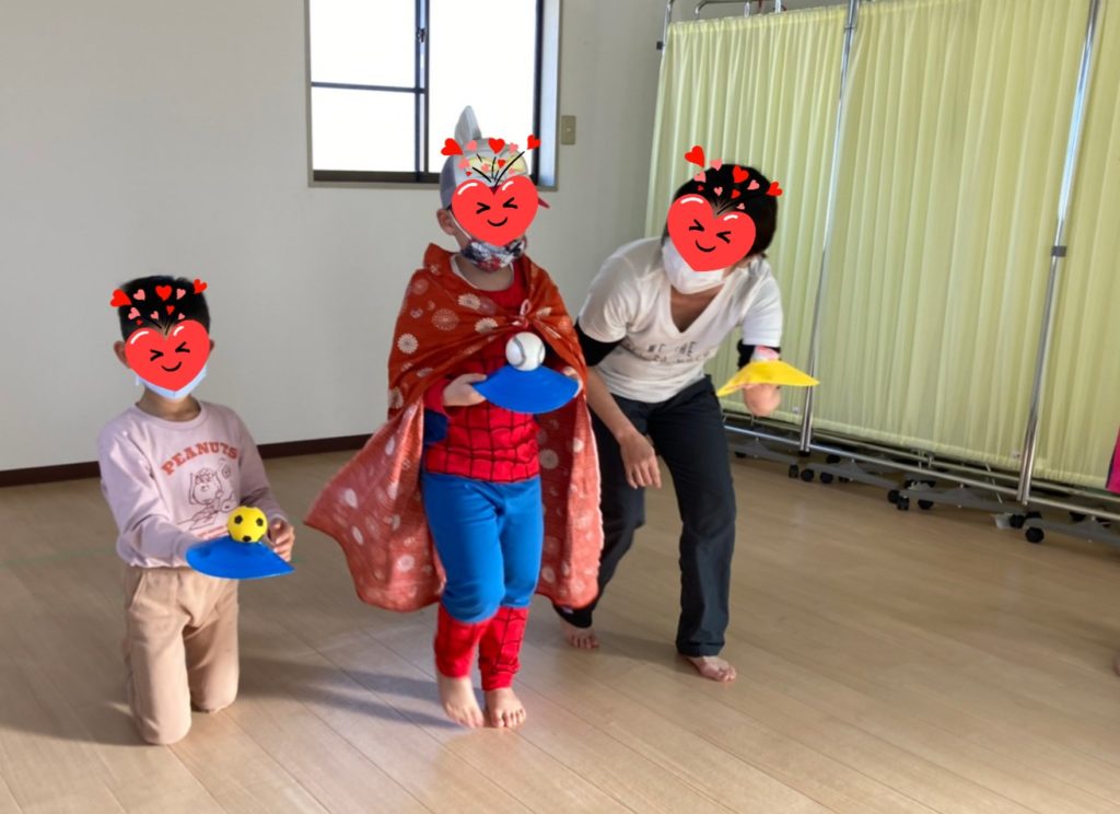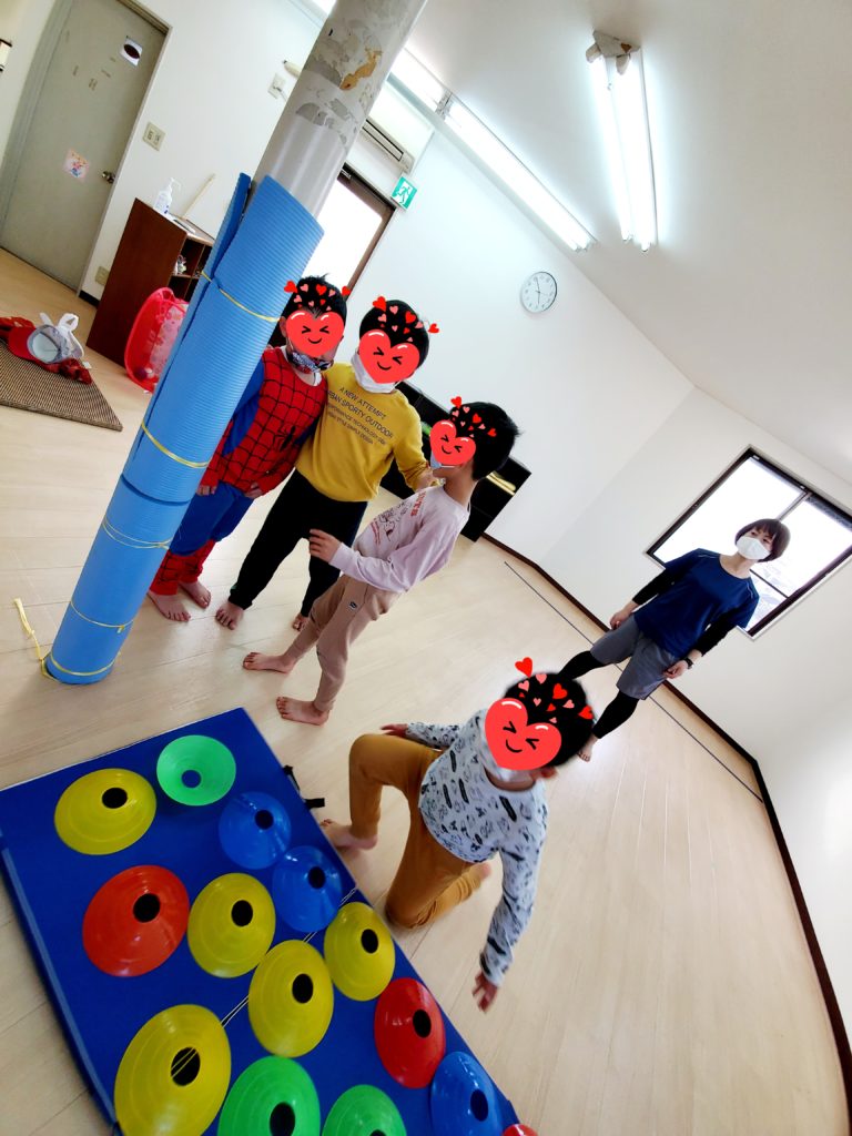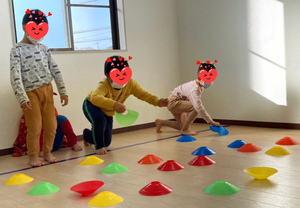 運動遊び室内遊びの様子です(#^.^#)くぐるのも楽しい壊すのも楽しい段ボールトンネル☆マットは物でも人でも何でも運べちゃいます☆タオルをおしりにくっつけて取られちゃダメよしっぽ取り☆それから新しいアイテム登場!!「カッパコーン☆☆☆」踏んで跳び乗っても、ボールを乗せて運んでも、ひっくり返したり取り合ったりするゲームでも使い方しだいで遊び方無限大です(ー_ー)!!