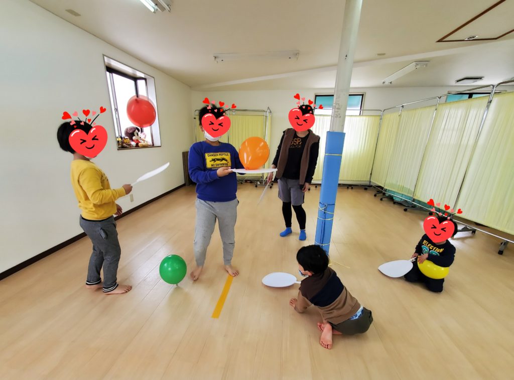 風船を床に落とさないよう、うちわに乗せたり仰いだり。。お兄ちゃんたち上手やなぁ(・´з`・)