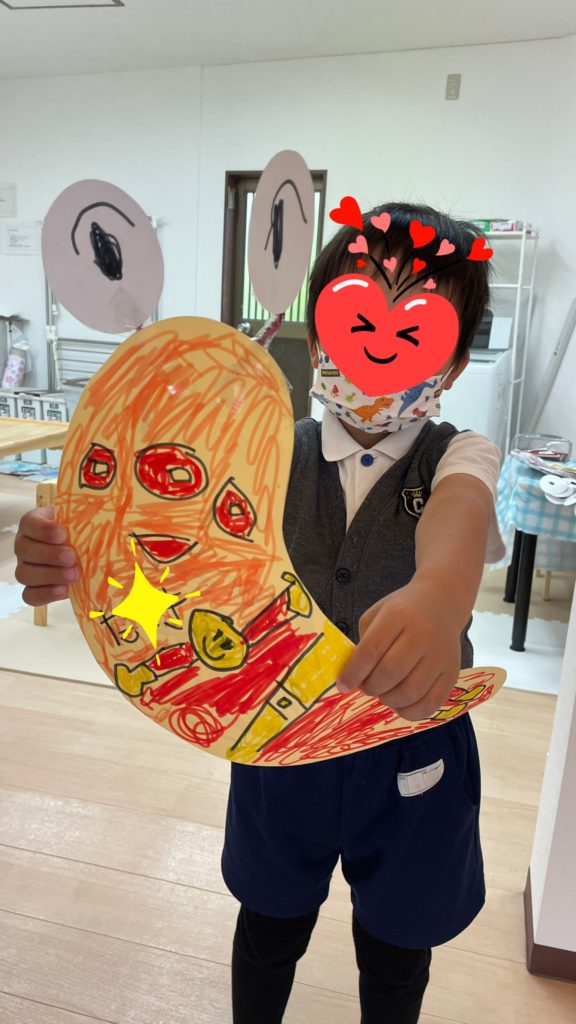カタツムリの目玉と体は好きな字やキャラクターの絵をペンで描いて完成です!👇の画像ア○パ○マンバージョン٩( ”ω” )و想像力がすごい!!