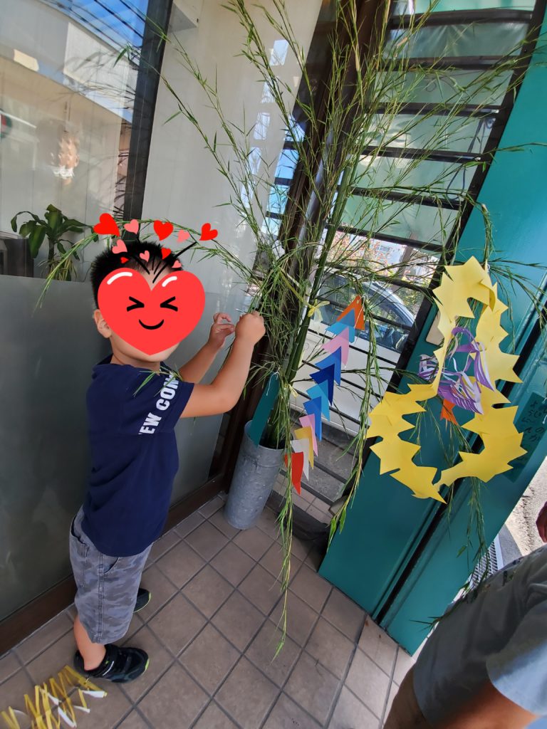 ご近所のSさんが七夕飾り用の笹を準備してくださいました🎋Sさんとっても立派な笹ありがとうございました!さっそく子ども達と短冊など飾りつけしています🎋