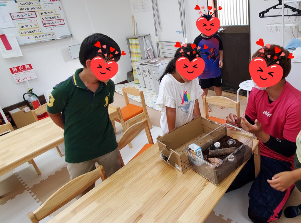 職員さんがカブトムシやクワガタを捕まえて子ども達に見せてくれました!興味津々で持ってみたり怖くて遠くから様子をうかがっていたりみんなそれぞれ違う反応で集まってくれました😆