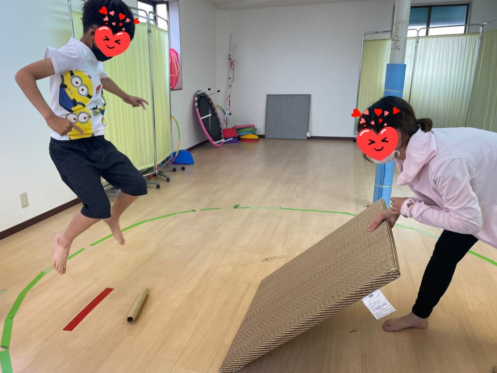 サーキットの前にいろいろな運動遊びをしています(#^^#)転がってくる棒をしっかり見てジャンプ!フラフープの輪の中にダンクシュート!子ども達もいろんなことが段々出来るようになってきました☆