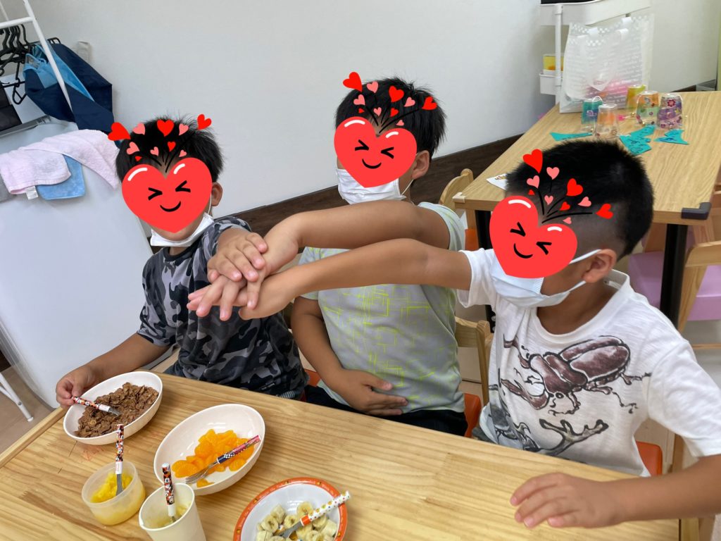 もうすぐ夏休み😄短縮授業で小学校のおともだちはいつもより早くゆうにやってきます。7、8月は利用できる日が増えることもあって違う小学校、こども園、幼稚園、保育所のおともだちにはじめましてとご挨拶する場面があります。少し輪の中に入りにくい子も中にはいます。でも「隣に座りよ~。」「いくつ?」「どこの小学校なん?」みたいな何気ない声かけから始まって、少しずつ仲良くなって同じおもちゃで遊んだり、活動の時お互いに助け合っていたり、年下の子に思いやりのある行動をしてくれていたり。。。職員さんに甘えにいってる姿やみんなで何か一つのことをやり遂げてる姿を見ていると、ゆうの輪がどんどん広がってるんだなぁと嬉しくなってしまいます😊
