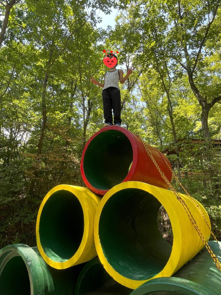 いよいよ遊びの時間はまず山の中を自然散策🌳アスレチックを登ったり虫探しをしたり大きな池の蓮の上にいたカエルを見つけてカエルの歌を唄ったり山道のアップダウンも元気いっぱい最後まで歩ききってくれました👍