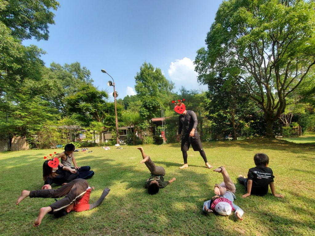 芝生広場では裸足になってお空を見上げて寝転がってそこから見える色を教えてくれました。そしてかけっこや鬼ごっこやだるまさんがころんだで思いっきり体を動かしました👣👣
