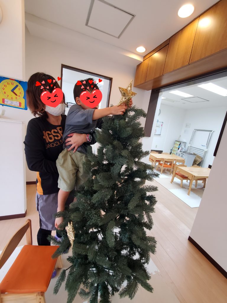 木のてっぺんにお星さま☆上手に差してくれました🙆
