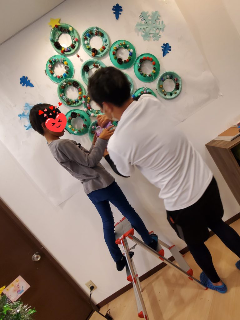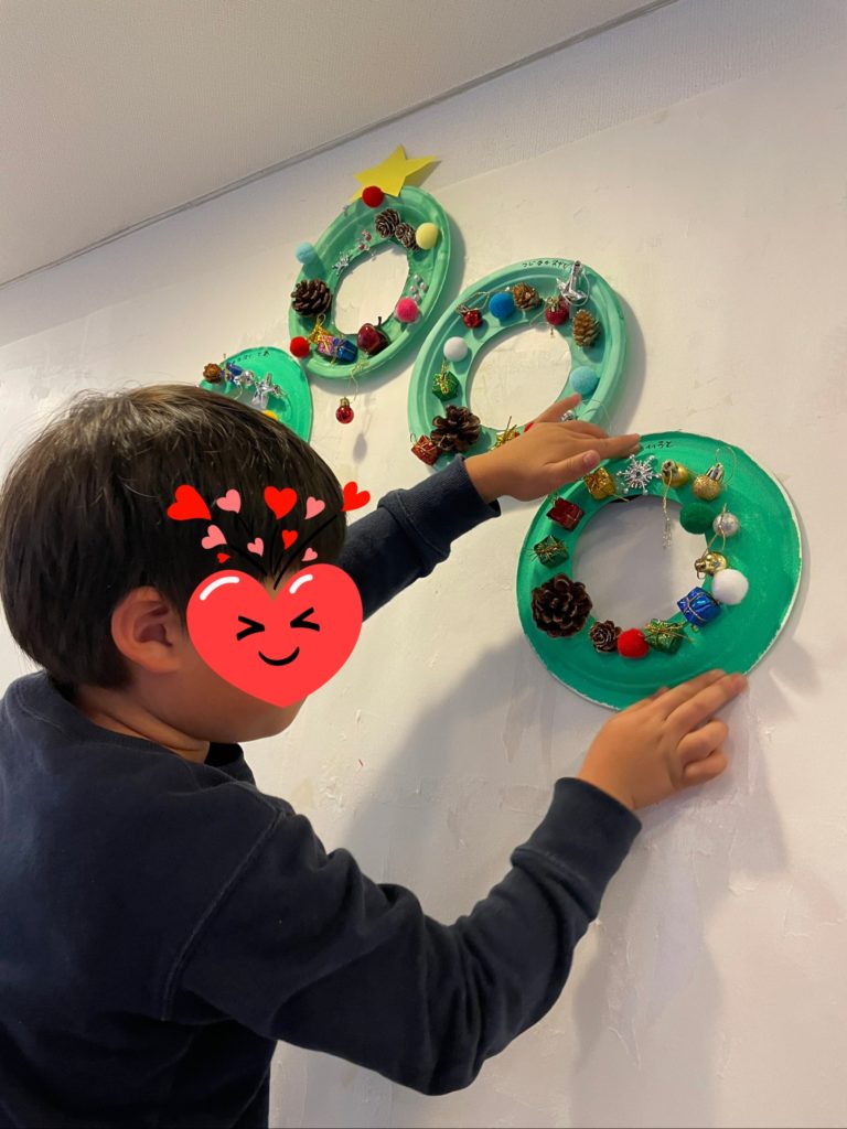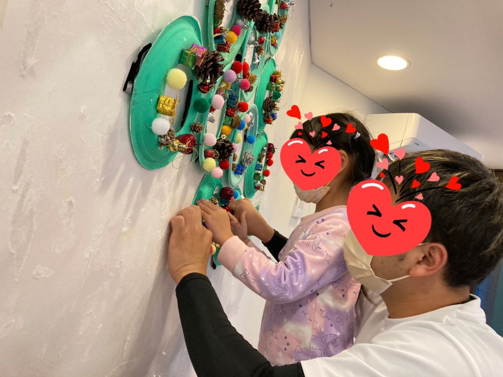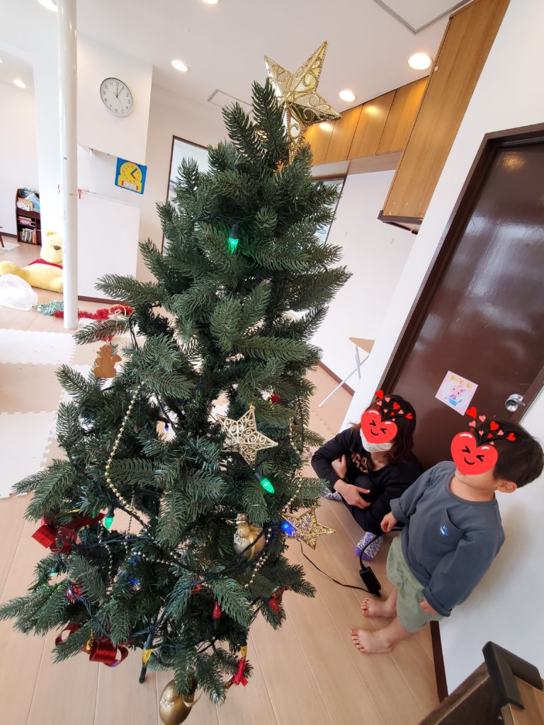 今日から12月スタート!子ども達にクリスマスツリーの飾りつけと壁面の貼りつけをしてもらいました🎄