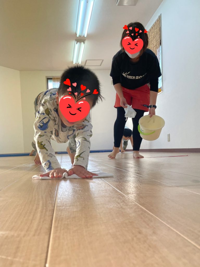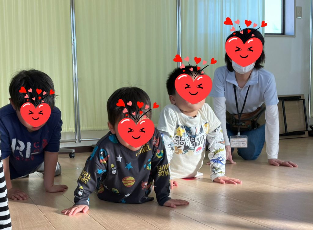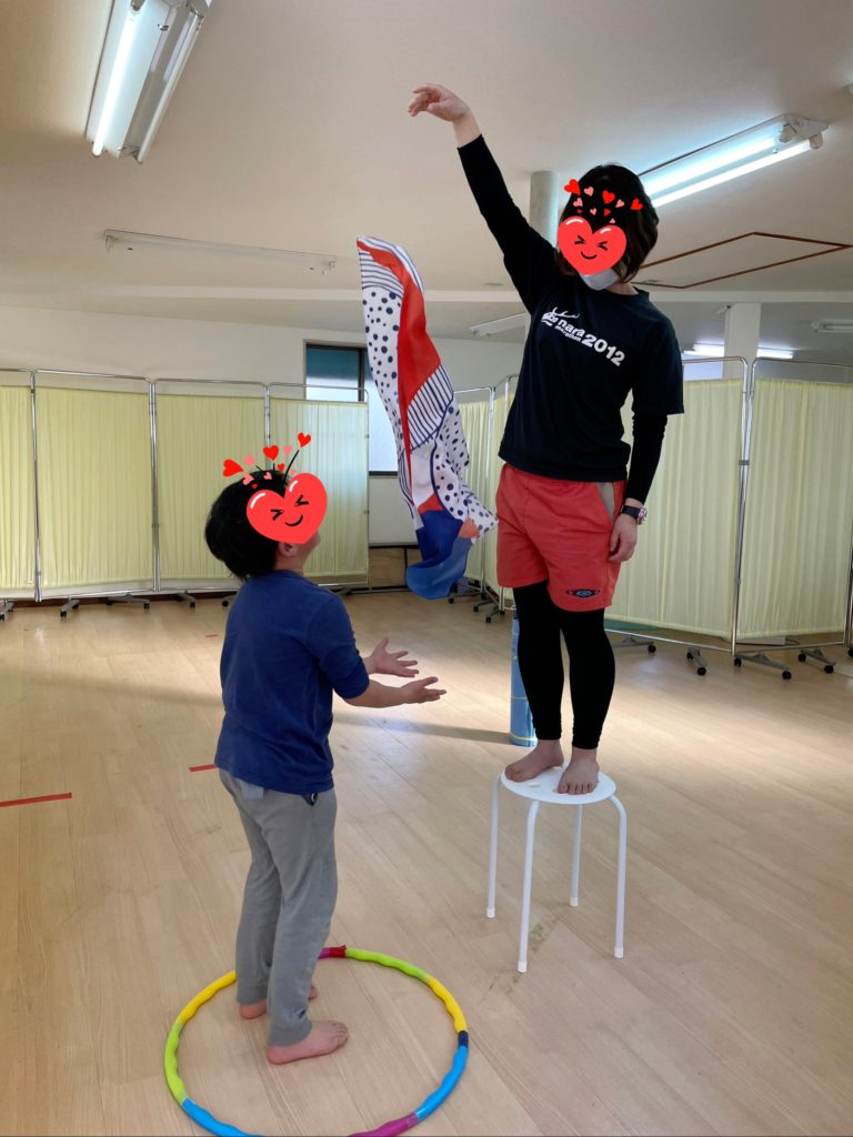 「布落としキャッチ」「アシカ歩き」「雑巾がけレース」に挑戦!その動作をサーキットで繋げてしっかり体を動かしました~😊