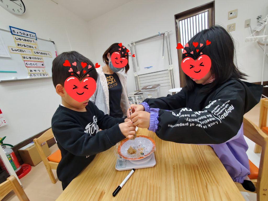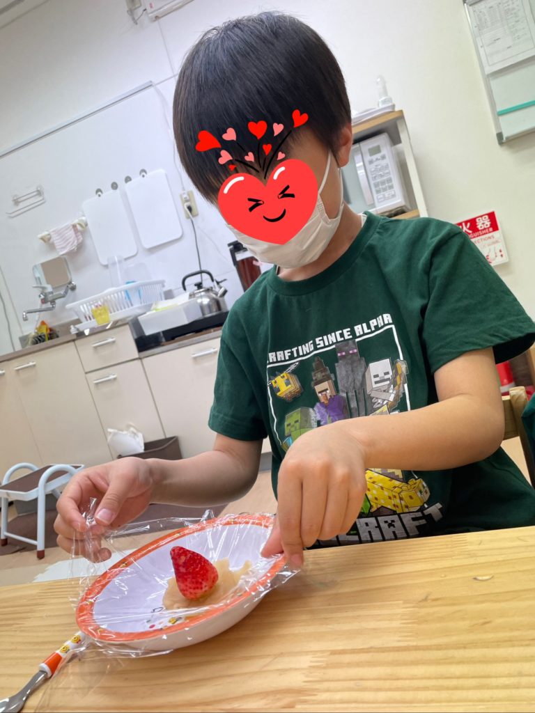 イチゴに白あんをくるんでまたそのうえから白玉もちを薄くくるんで「苺大福」を作りました~😊みんな和菓子職人さんみたいでした。