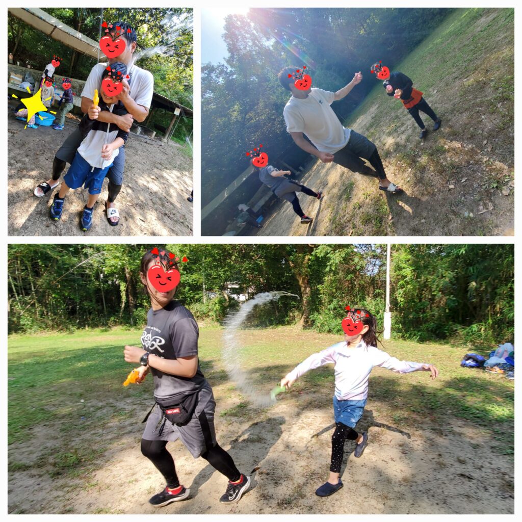 いよいよ最後の時間は子ども達が楽しみにしていた水遊びをしました😆たくさんの水ふうせんを膨らませて手にいっぱい持ったら職員さんに全力ダッシュで当てに行くぞ~~🏃🏃‍♂️水てっぽうでもかけあって全員びしょ濡れになるまでめいっぱい遊びました⭐