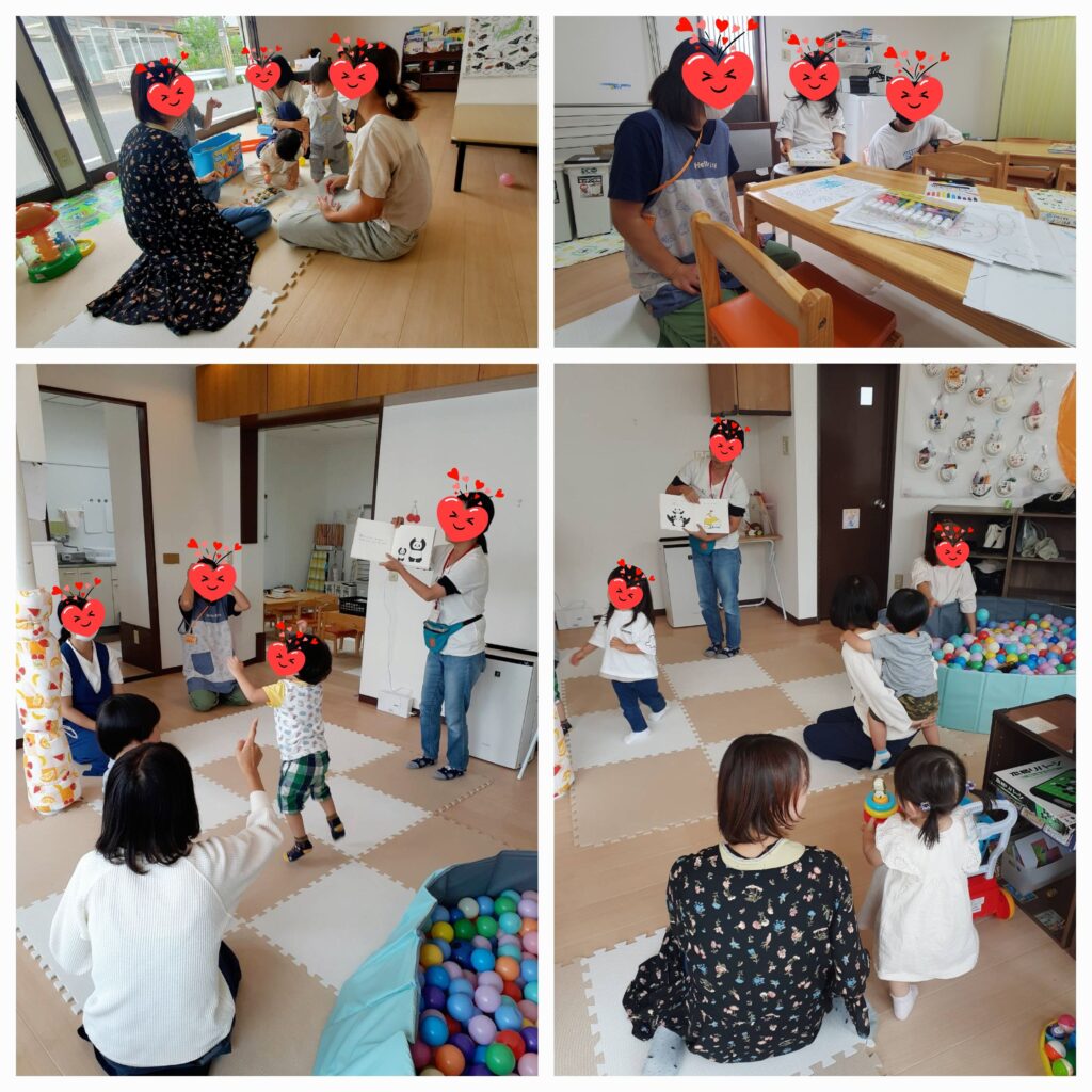 10月1回目のみんなのひろばが開催されました😄ママ同士の会話も弾む中、今日はパパも娘さんを連れて来ていただきました🤗子ども達もお絵かきやおもちゃで遊んだ後はみんなで集まって「ぱんだおやこたいそう」をして楽しんでいます🐼