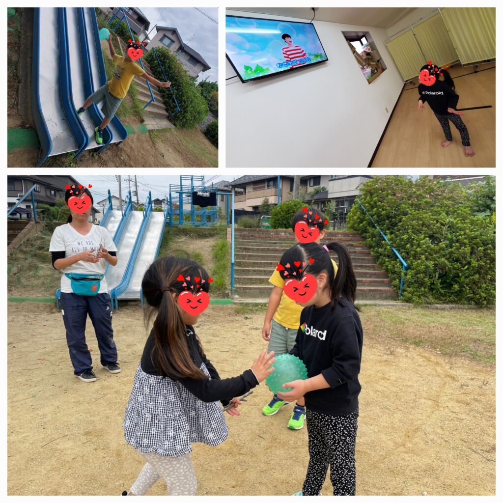 お腹がいっぱいになったところで室内で動画を見ながら体を動かしたり公園に行ってボール当てやサッカーをして遊んでおりま~す😊