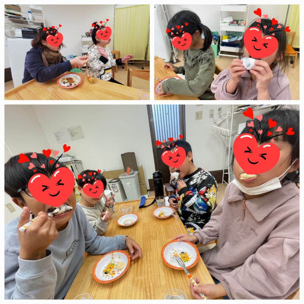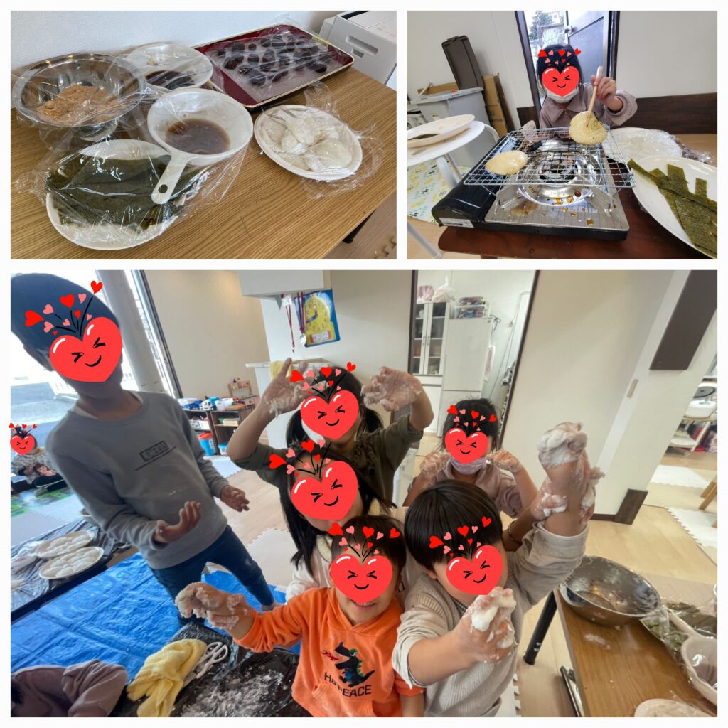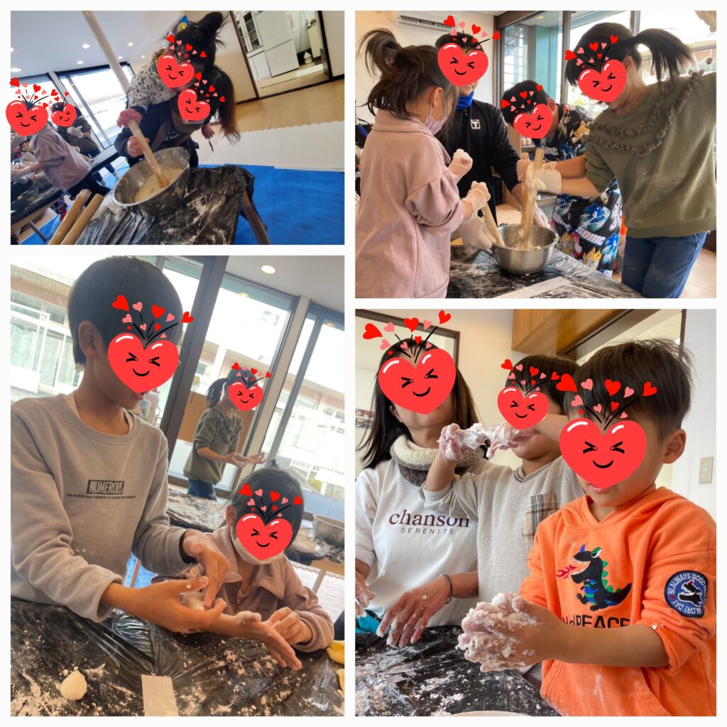 たくさん作ったおもちはおやつにいただきました😊次々「おかわりー!」の声がかかり、おかわり分の味つけが間に合わない~😅くらい食べてくれた子ども達でした🤗