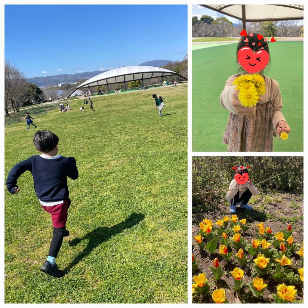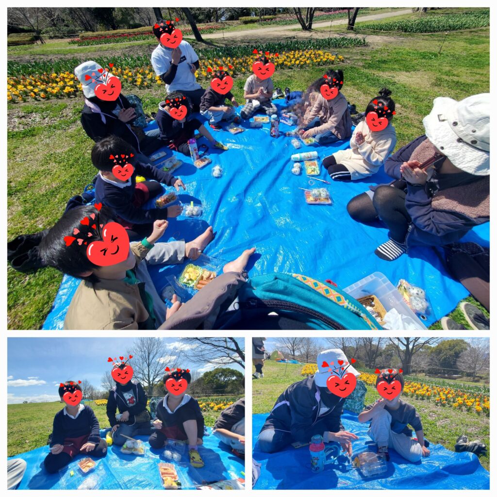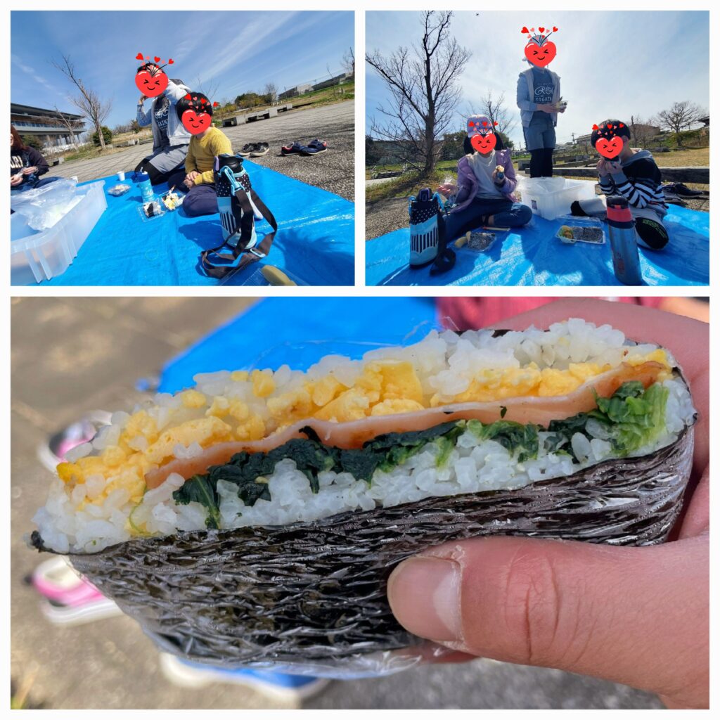 1日目は「馬見丘陵公園」に行ってきました😊おにぎりをにぎって、おかずを盛りつけて日替わり弁当の出来上がりです🍱残念ながら桜はまだ咲いていませんでしたが😓快晴の中シートをひろげてお昼ご飯の時間です😚みんなでワイワイお話しながら食べ終わった後は、ひろ~い芝生に駆け出していきました!