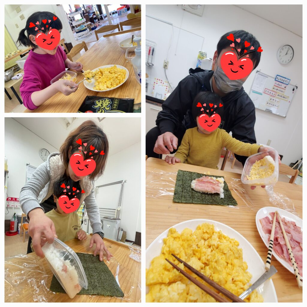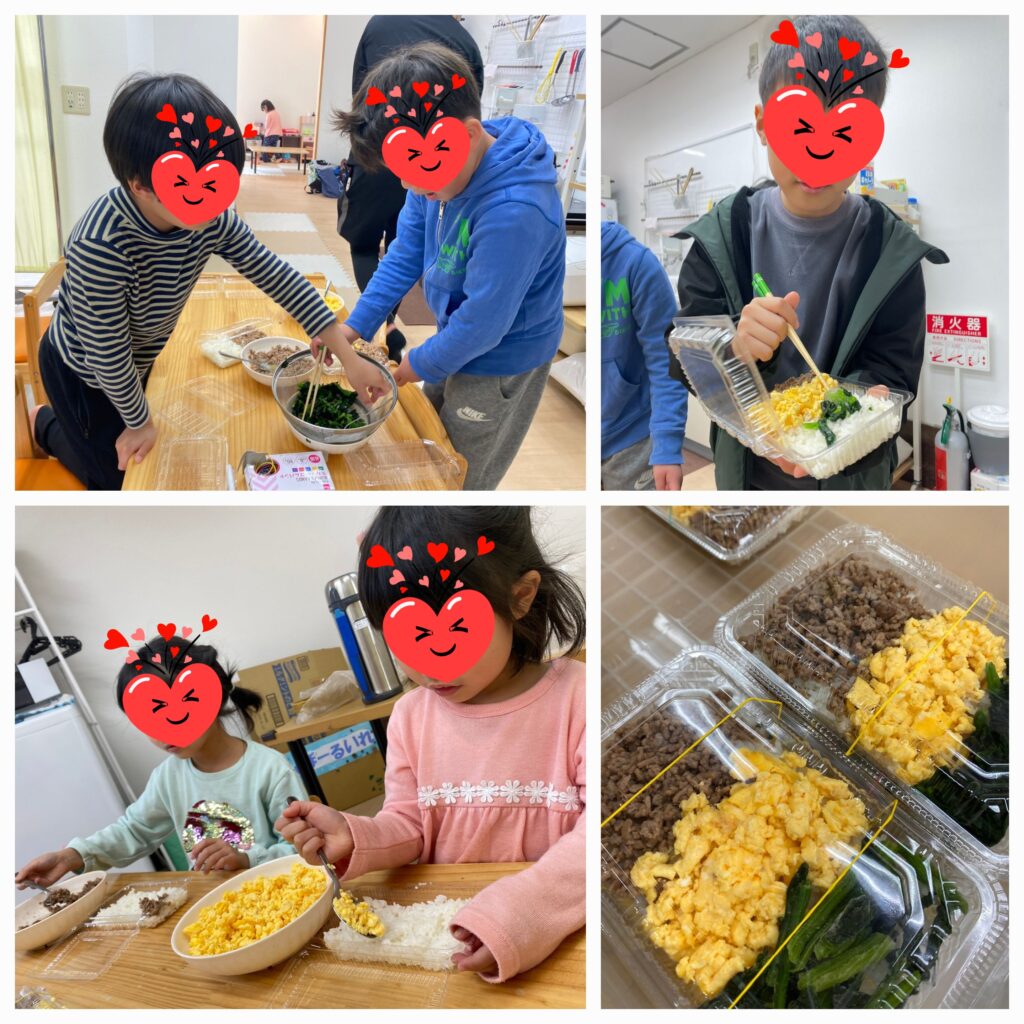 3日目は「奈良県立図書情報館」の広場でお弁当を食べ「子どもセンター公園」で遊びました😊四角いタッパーに、炒り卵・ベーコン・ほうれん草をごはんでサンドしてギュッギュッと押し込み、海苔の上にひっくり返してラップで包んだら、おにぎらず弁当の出来上がりです🤗暖かい陽射しの中お弁当を食べ終えるとトカゲさんがやって来てくれました🦎公園でも遊具でたくさん遊びました🛝桜は・・1分咲きくらいです🌸