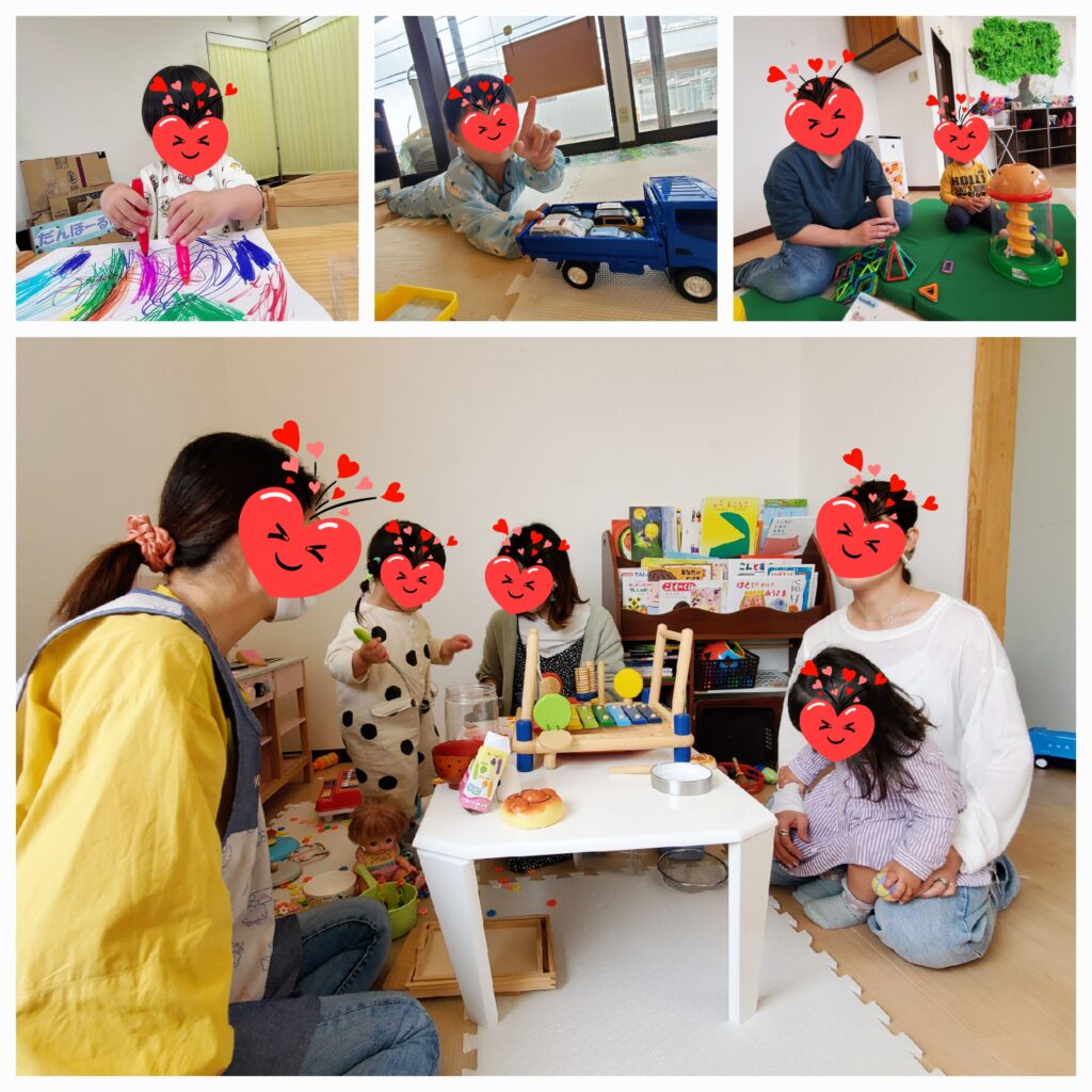 5月1回目のみんなのひろばが開催されました😄新しいお友達とママも来ていただき、にぎやかな時間となりました😆ゆうに慣れているお友達はママから離れてお絵かきや車で遊んだり、おかたづけも少しずつ出来るようになってきました👍絵本を見る時にはイスもしっかり運んでくれましたよ~🥰