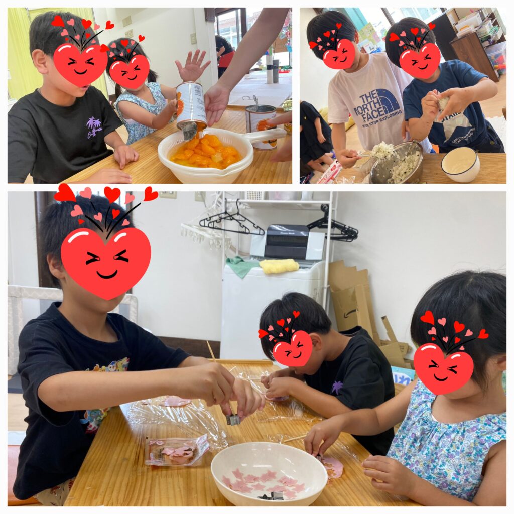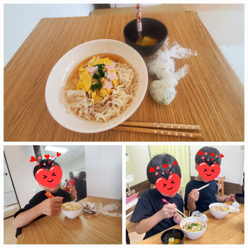昼食クッキングで「七夕そうめん」「おにぎり」「フルーツポンチ」を作りました😊