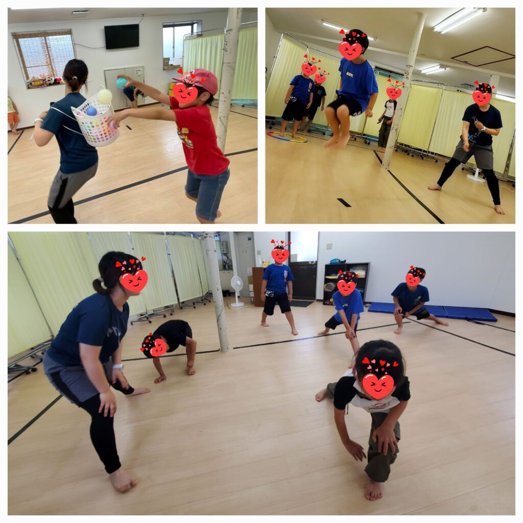 サーキットで「カゴ入れボール」「大繩跳び」「音楽体操」をしました🏃‍♂️いろいろな運動にチャレンジ!少しずつ難しくなってくると、さらにやる気が出てくる小学生の子達でした🤗