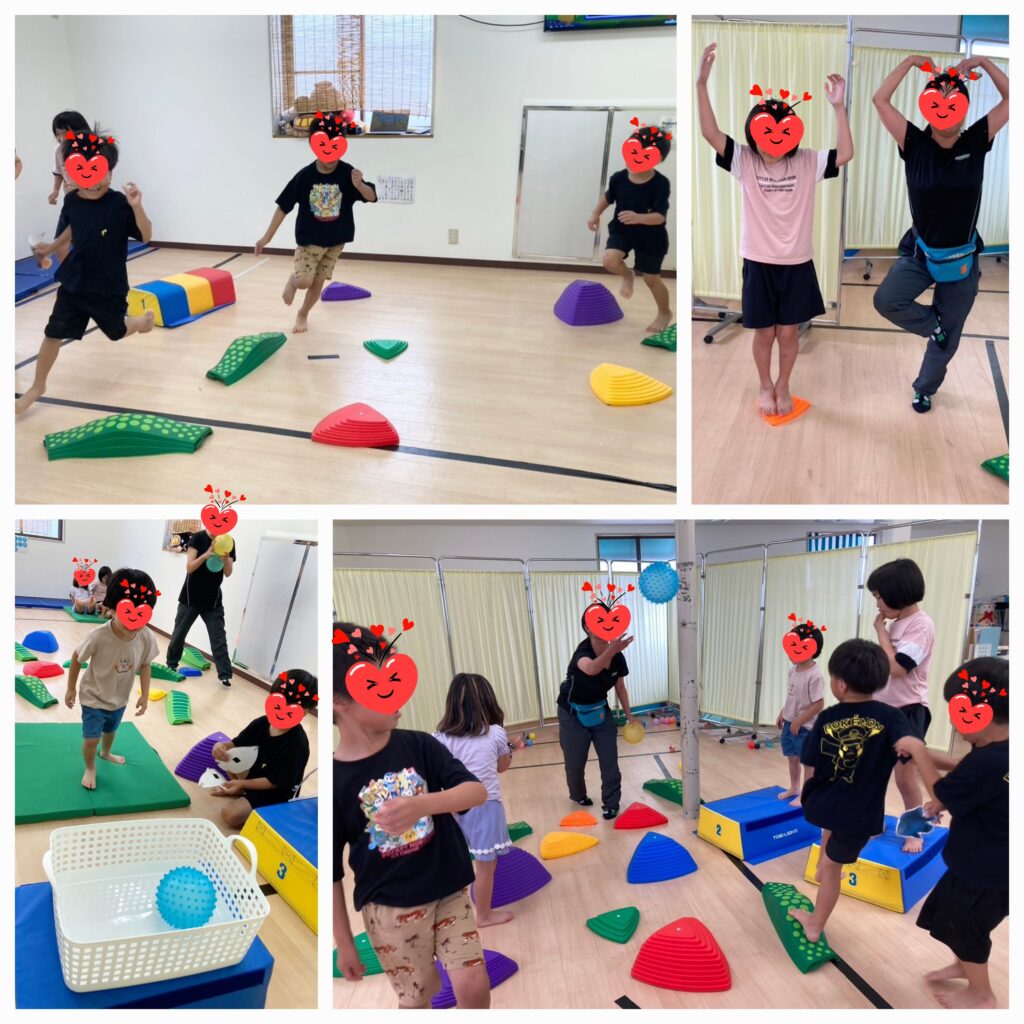 音楽遊び・サーキットで「音楽ゲーム」「サメゲーム」をしました🎵🦈曲に合わせながらバランスストーンや平均台に乗ったり降りたり。。ボールが飛んでくると体を仰け反らせながらよける動きも上手に出来ていました😚
