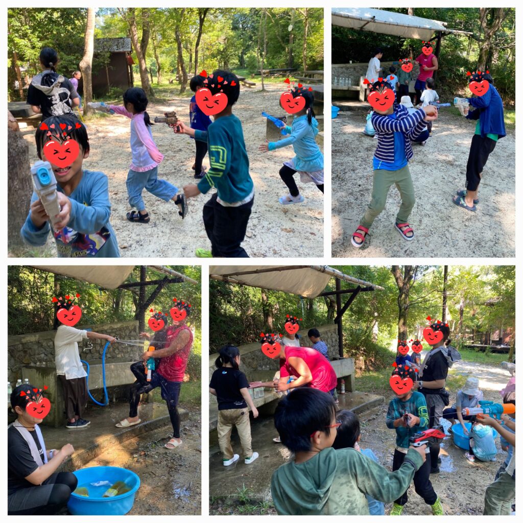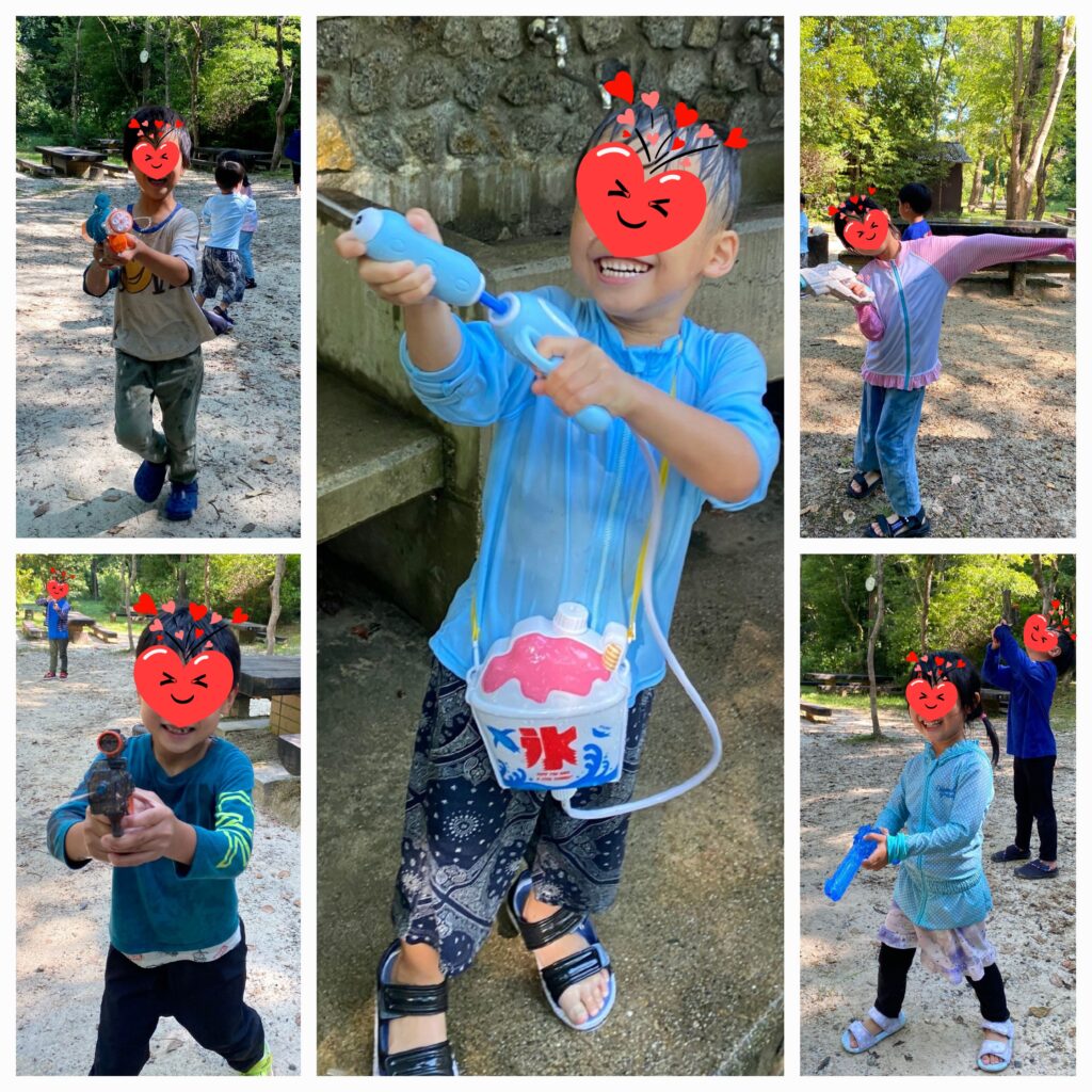 そして最後にお待ちかね恒例の水遊び😝今年は1人に一丁水鉄砲を持って、かけあいっこしてもらいました!いっぱい濡れたって汚れたってかまわない、子どもも大人も一緒になって遊んでいる時のみんなの笑顔がたまらない!!