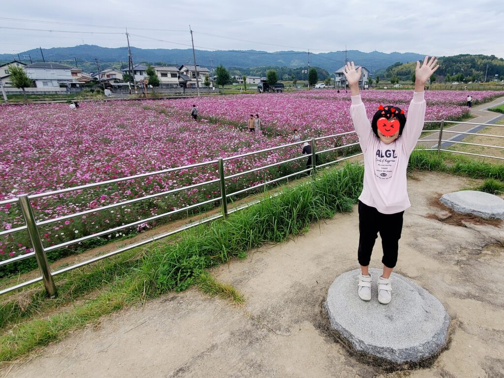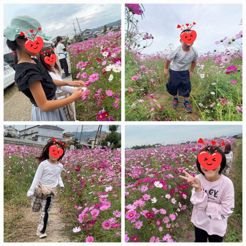 斑鳩町のコスモス畑散策に行ってきました😊辺り一面に咲いている背丈と同じくらいのコスモスの畑内は迷路のようになっていて右から左まで走り抜けたり、身を屈めて見つからないようにしてみたり、いろんな遊びを作って楽しむことができました🌺🌺