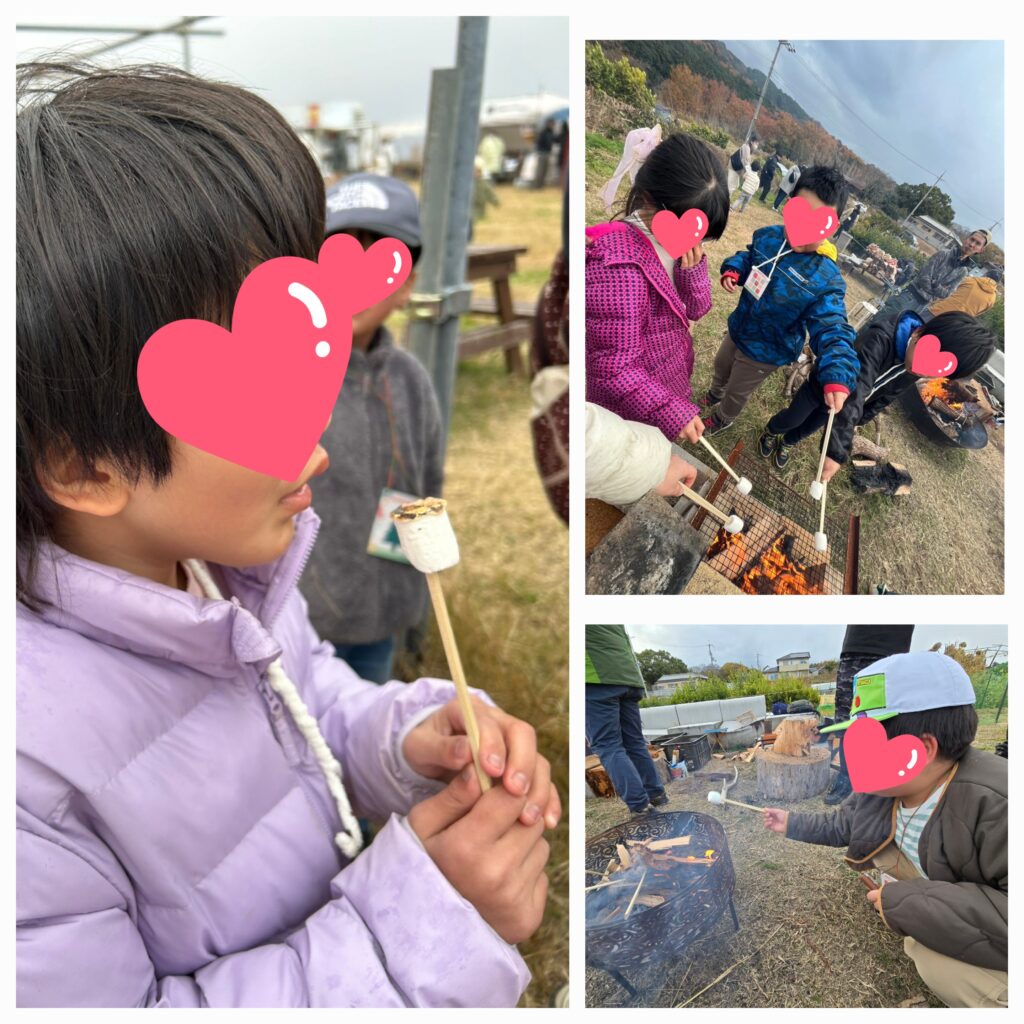 焚き火を囲んで焼きマシュマロも作りました🔥「ふーふー!」「はふはふ。。あまいね~😋」寒い日でもホワっと温かくなりますね~🥰