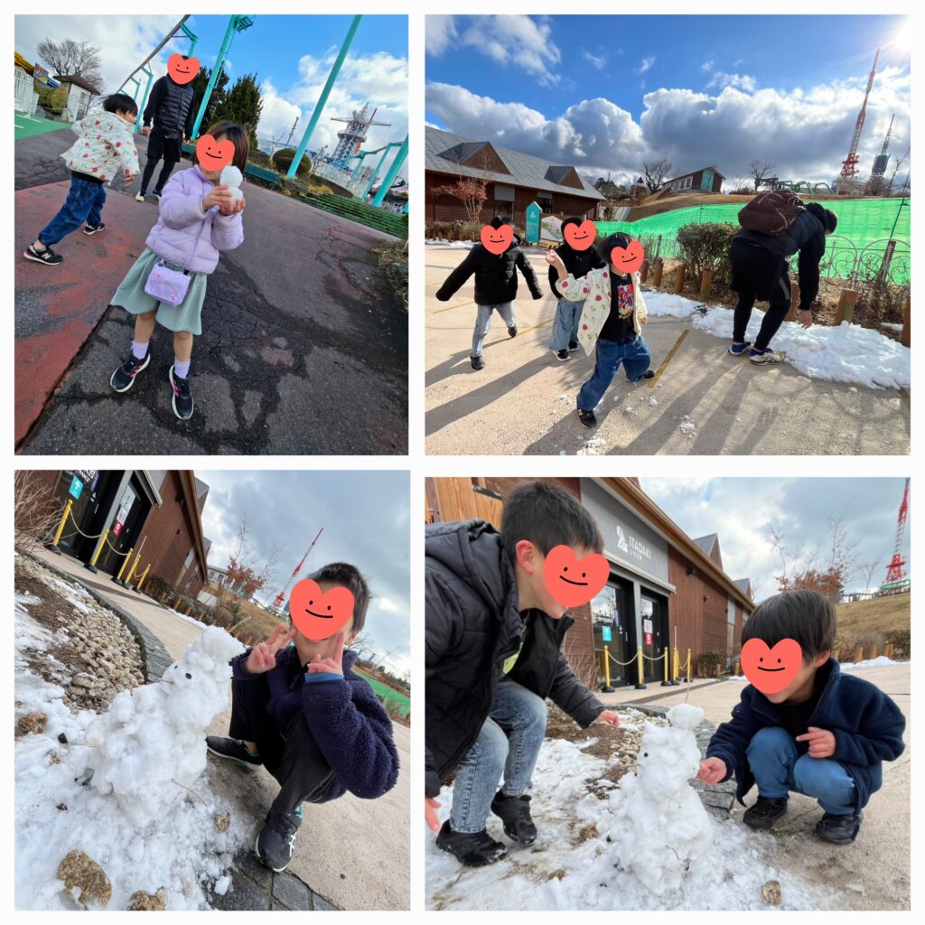 終点に到着すると目の前は休園中の生駒山上遊園地😝乗り物は動いていませんが園内には入れます😊そして見つけたのが道に積もっていた雪❄️やっぱり始まりました雪合戦💦大きな雪だるまも作りました⛄景色も良くて大阪の街が一望出来ました🤗静か~な遊園地でワイワイ遊んで少し変わった体験となりました~🤭