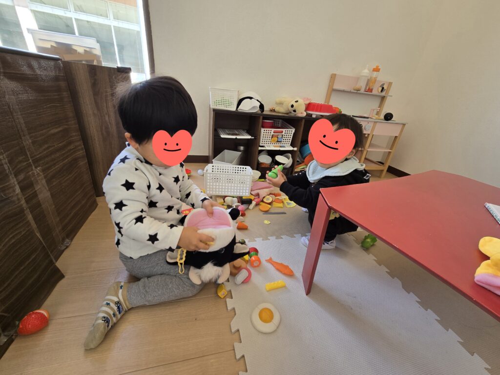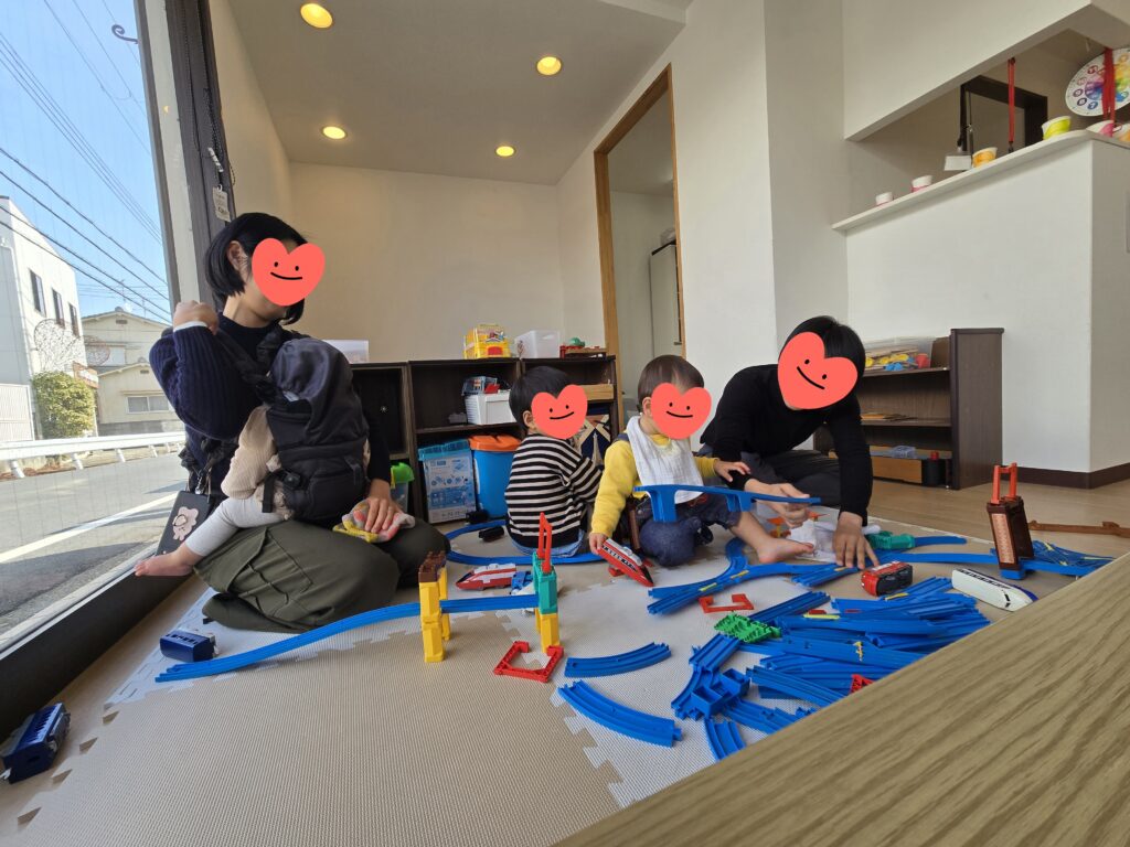 新年最初のみんなのひろばが開催されました😊「おはよ~🎵」「あけましておめでとうございます~🎶」ひさしぶりに来たゆうのお部屋へもす~っと入っておもちゃで遊び始めてくれました😝