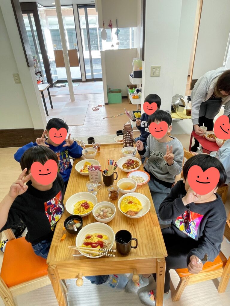1枚ずつ薄焼き卵を乗せてケチャップをかけるとみんなで「いただきま~す!!」いつもたくさん食べてくれてありがとう♪