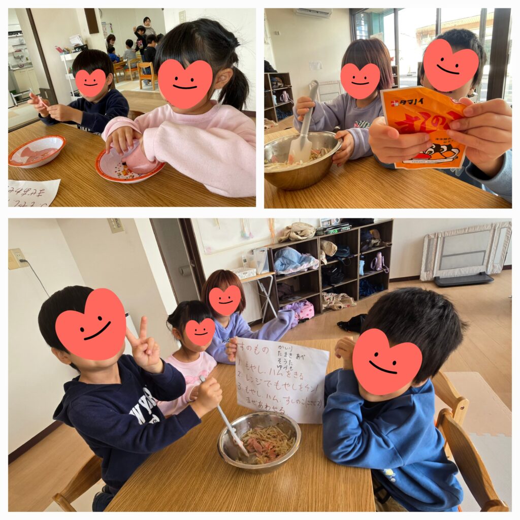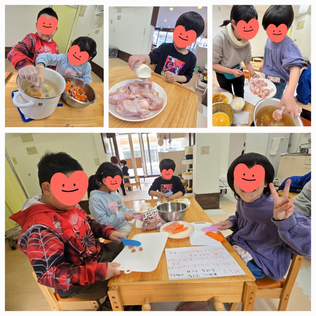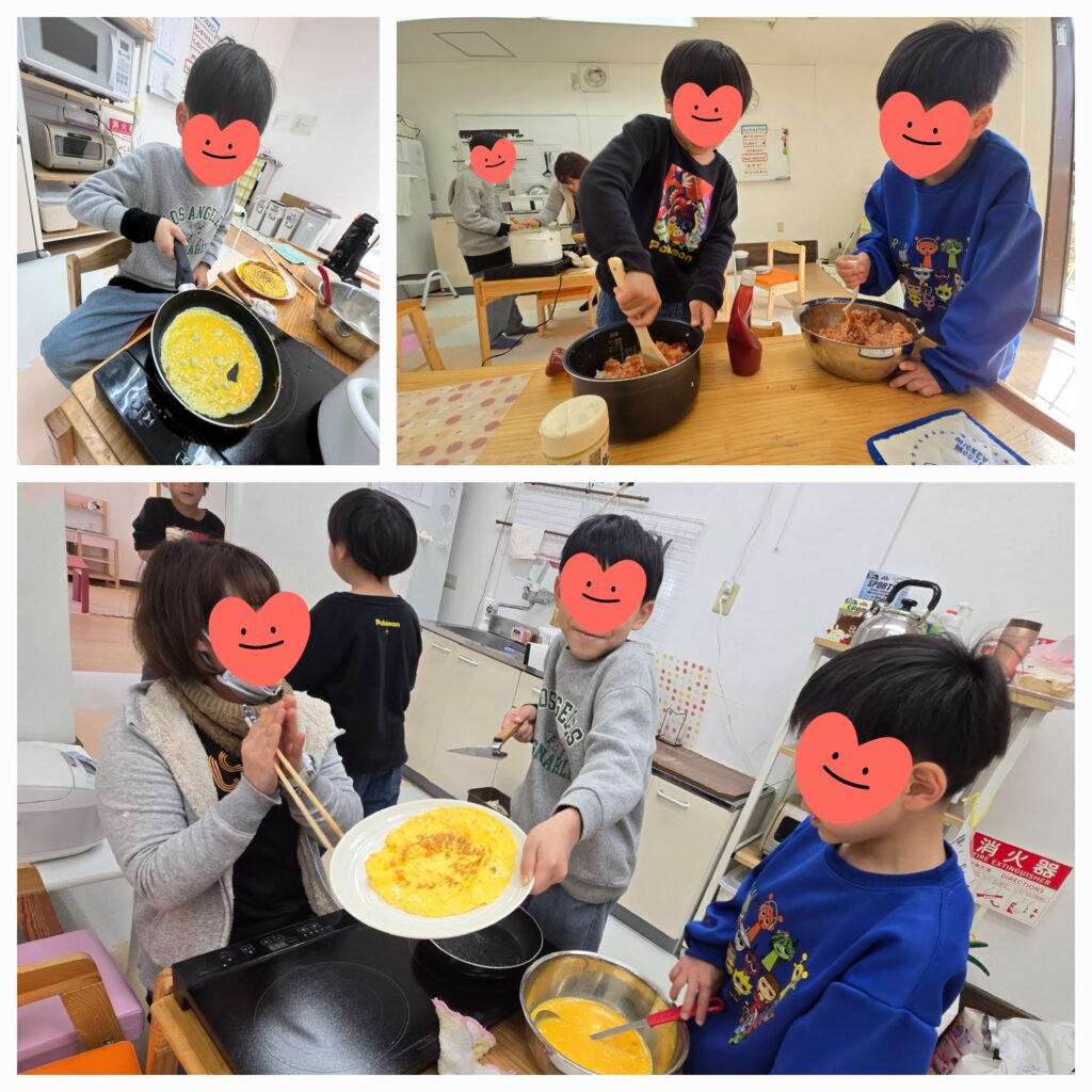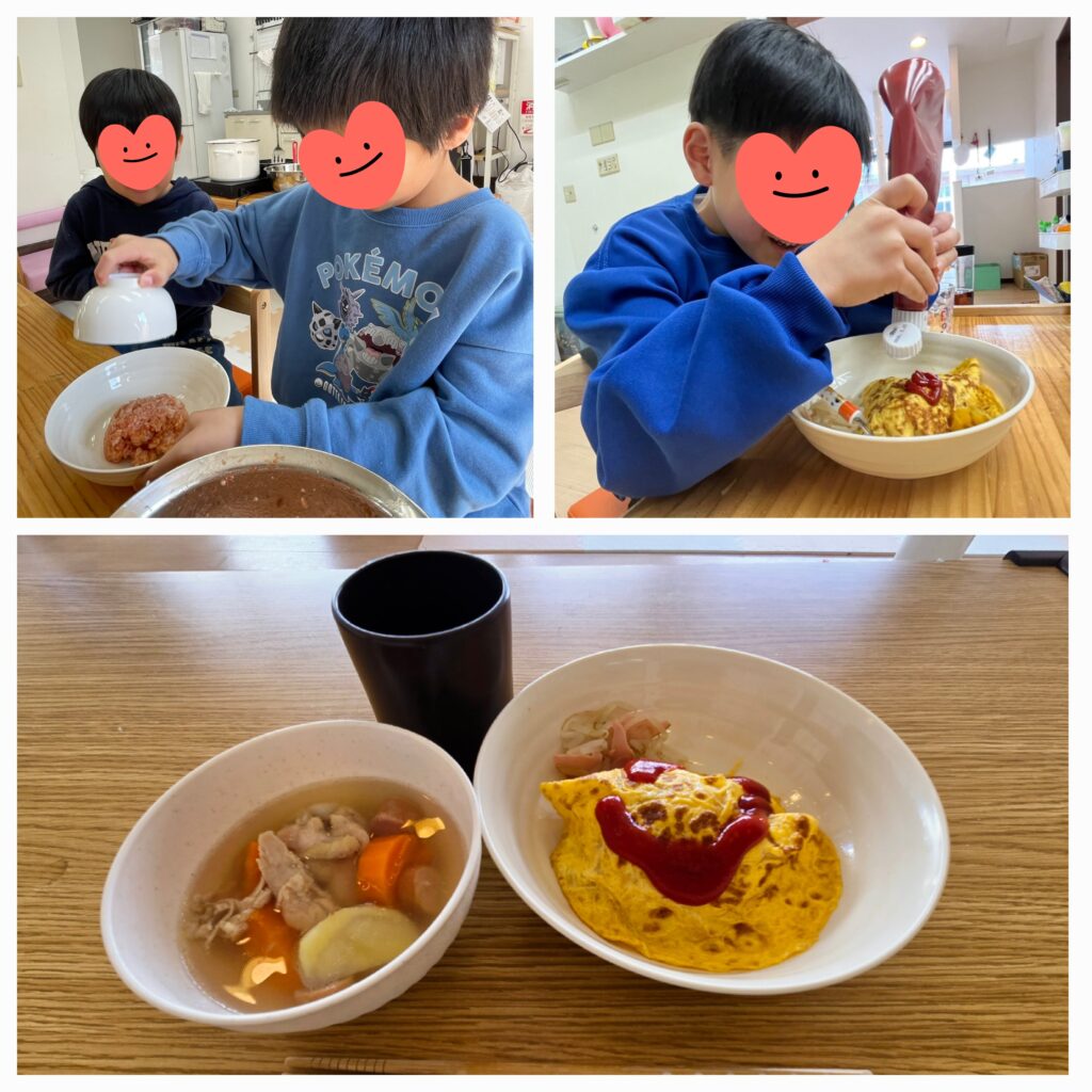 昼食クッキングで「オムライス🥚」「ポトフ🥕」「酢の物🥓」を作りました😊