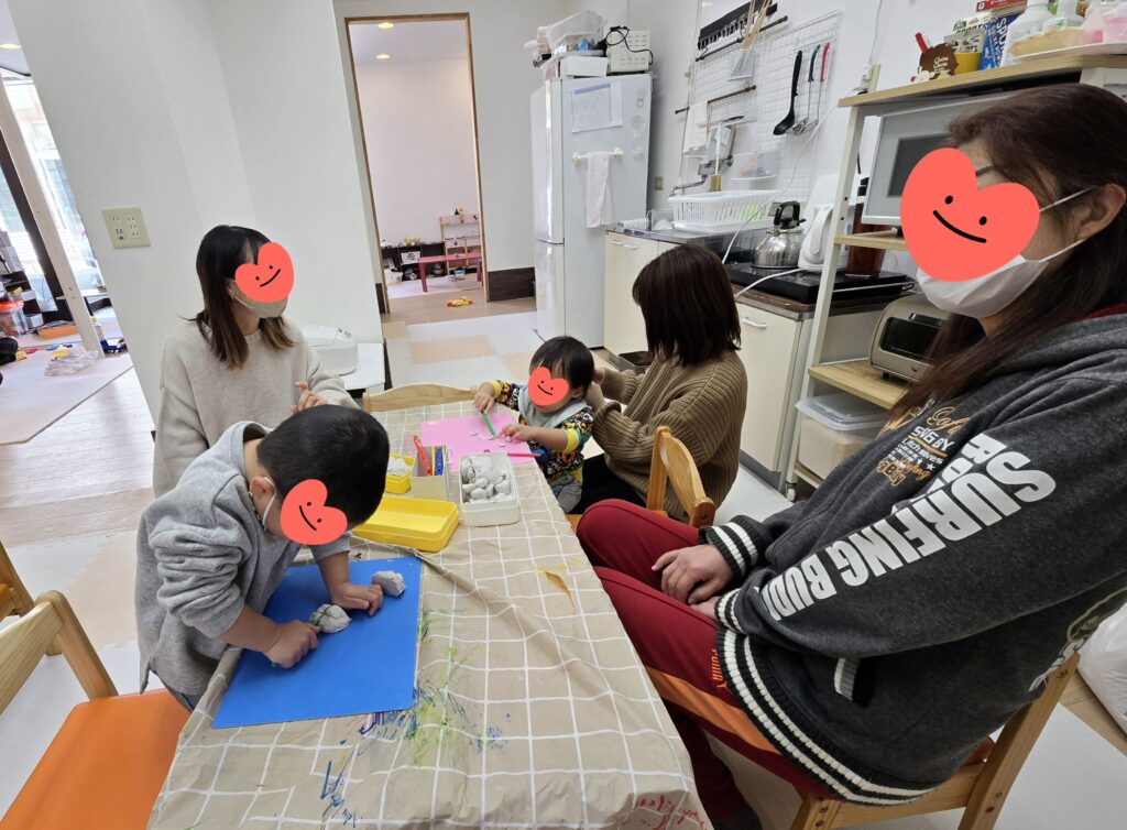 1月2回目みんなのひろばが開催されました😊こちらのお部屋ではねんどやブロックに興味を持ち始めたお友達☆そちらのお部屋では初めましてのお友達がおもちゃでたくさん遊び、赤ちゃんはママのまわりでハイハイしながら探検してくれました♡