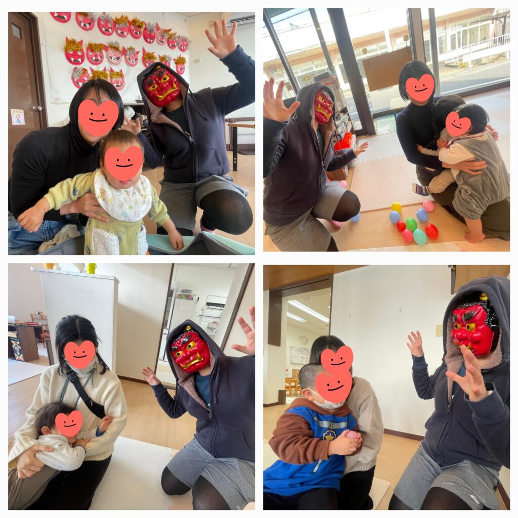 2月1回目のみんなのひろばが開催されました😊今回は節分行事で赤鬼さんがやってきてみんなの前でご挨拶してくれました👹泣いてママにしがみついている子、平気な顔で遊んでいる子、カラーボールを投げて鬼は外福は内をしてくれる子。。いろんな反応があって大人も笑顔😄とってもほっこりとした時間となりました🤗