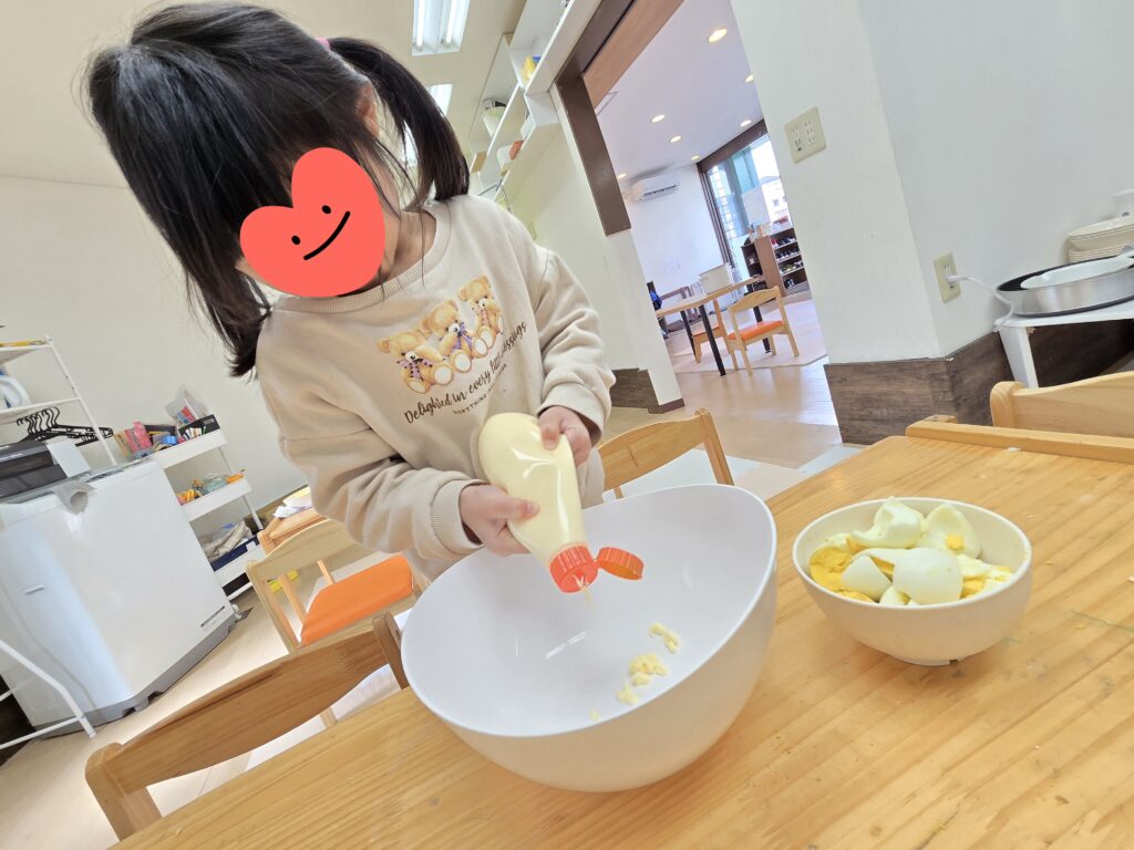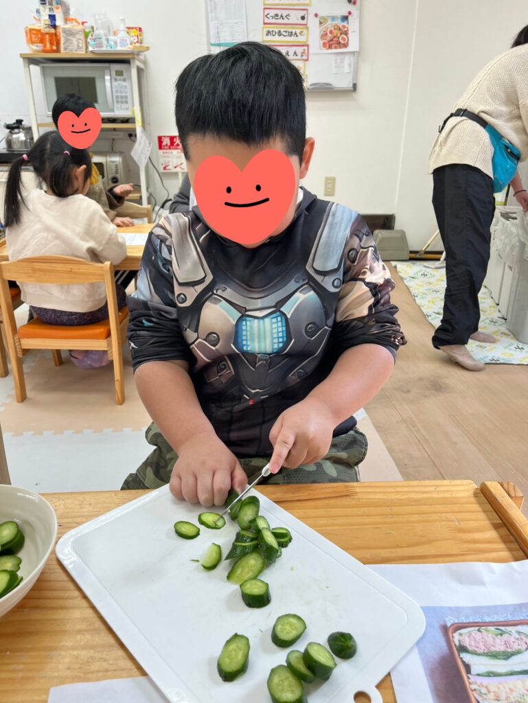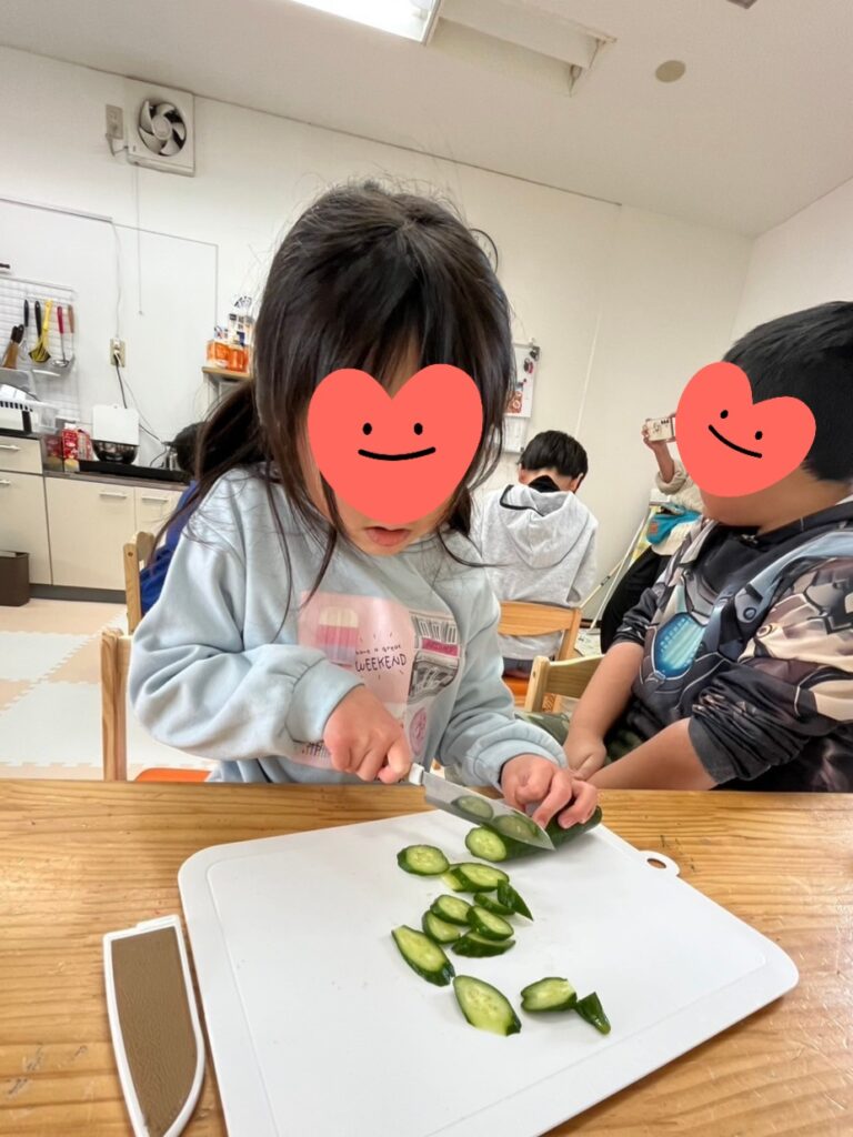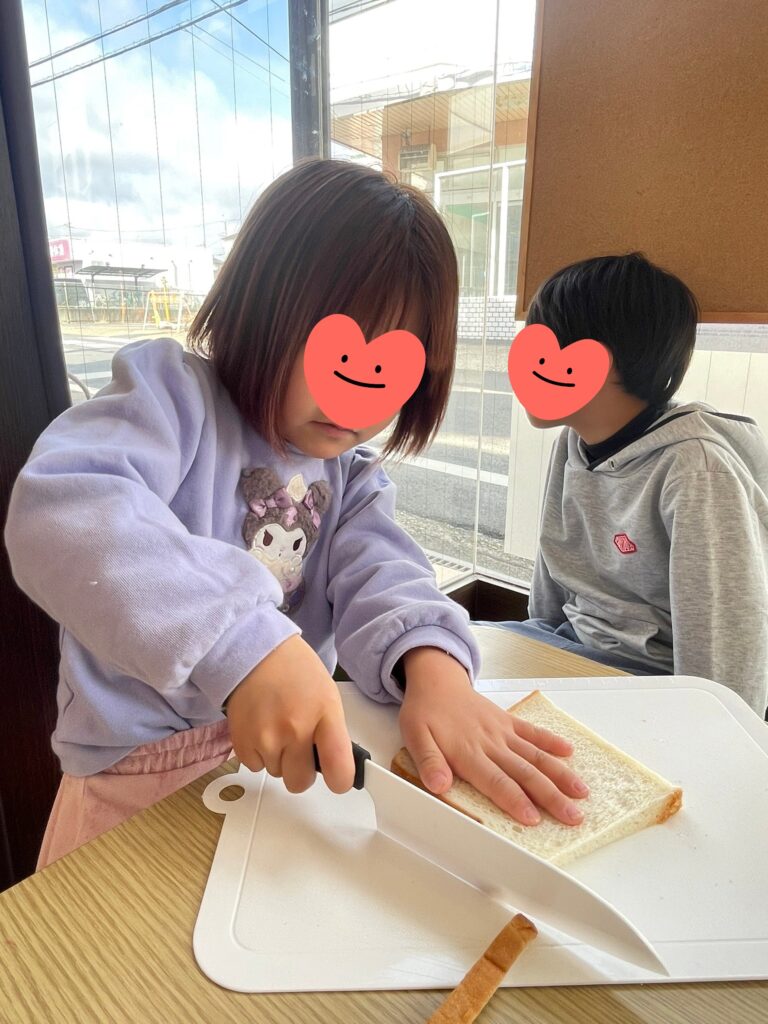 昼食クッキングで「サンドイッチ」「ジャーマンポテト」を作りました😊年中さんから小3まで10人の子ども達全員が仲良く楽しく料理してくれました🤗困っているお友達がいればそっと手伝ってくれている子がいたり、みんなでパンのみみを味見(つまみ食い?)したり、食パンに具材を挟んでコーンスープを添えて「いただきます!!」いつものようにたっくさん食べてくれました😋