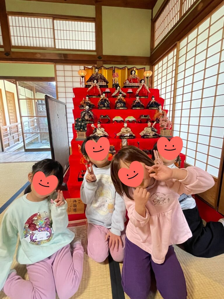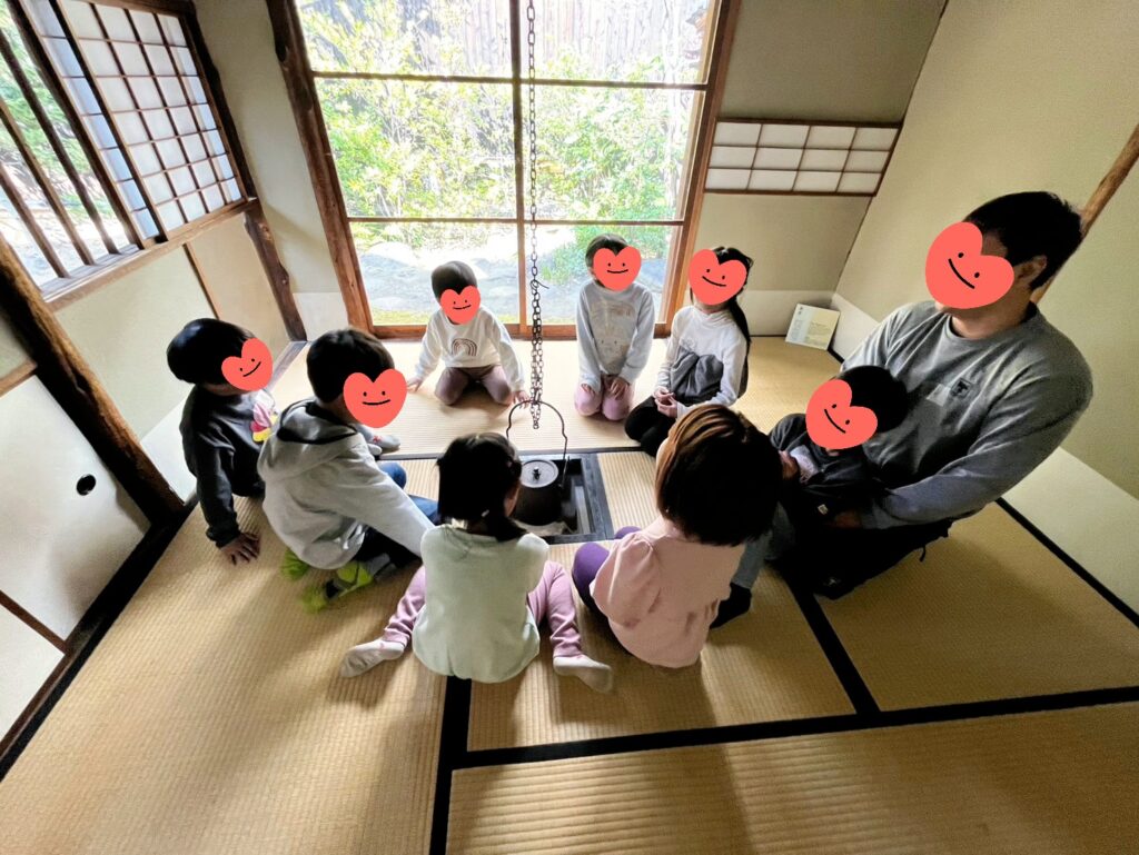 ご飯とお味噌汁が炊けるまでの間、にぎわいの家の中を探検させてもらいました🤗囲炉裏のお部屋やひな壇があるお部屋、障子や渡り廊下など。。約100年前に建てられた町家には見慣れない物がたくさんあって興味深々の様子でした🤭
