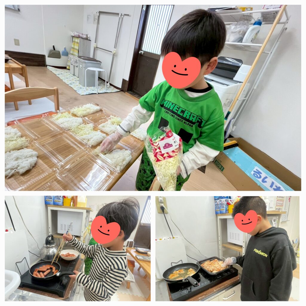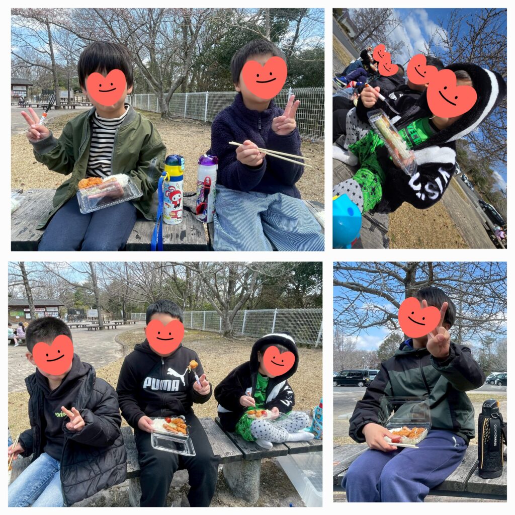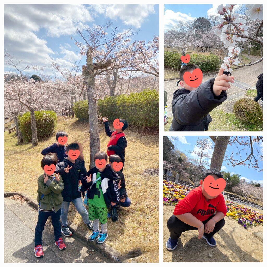 4日目は「カラアゲ弁当」を作りました😊「ぼくカラアゲやったら何個でも食べれるねん!」「フライパン使って初めて焼いた~!」と職員さんに教えに来てくれました😚ポカポカ良いお天気の中「生駒山麓公園」でお弁当を食べた後はお花見タイム🌸複合遊具や川エリアでもたくさん遊びましたよ~🤗