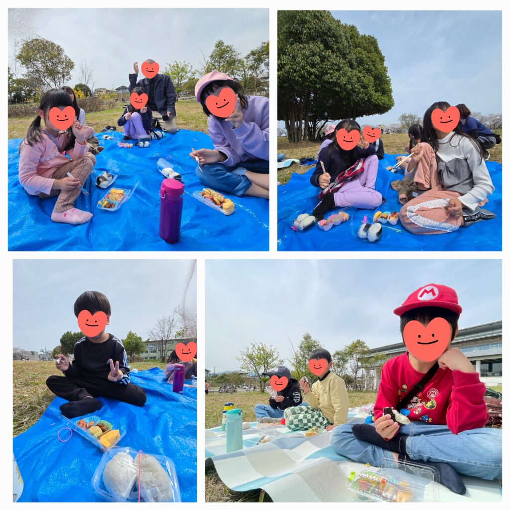 5日目は「ミックス弁当」を作りました😊ジャーマンポテト・卵焼きなどたくさん作って盛りつけもグッド🙆自分が食べるおにぎりの中身の具材もカラアゲ・シャケフレーク・ツナマヨの中から選んでにぎってもらいました🍙佐保川沿いの満開の桜を見ながら食べるお弁当最高!!ゆっくりお散歩した後は「柏木公園」で遊んでいます~🌸🌸