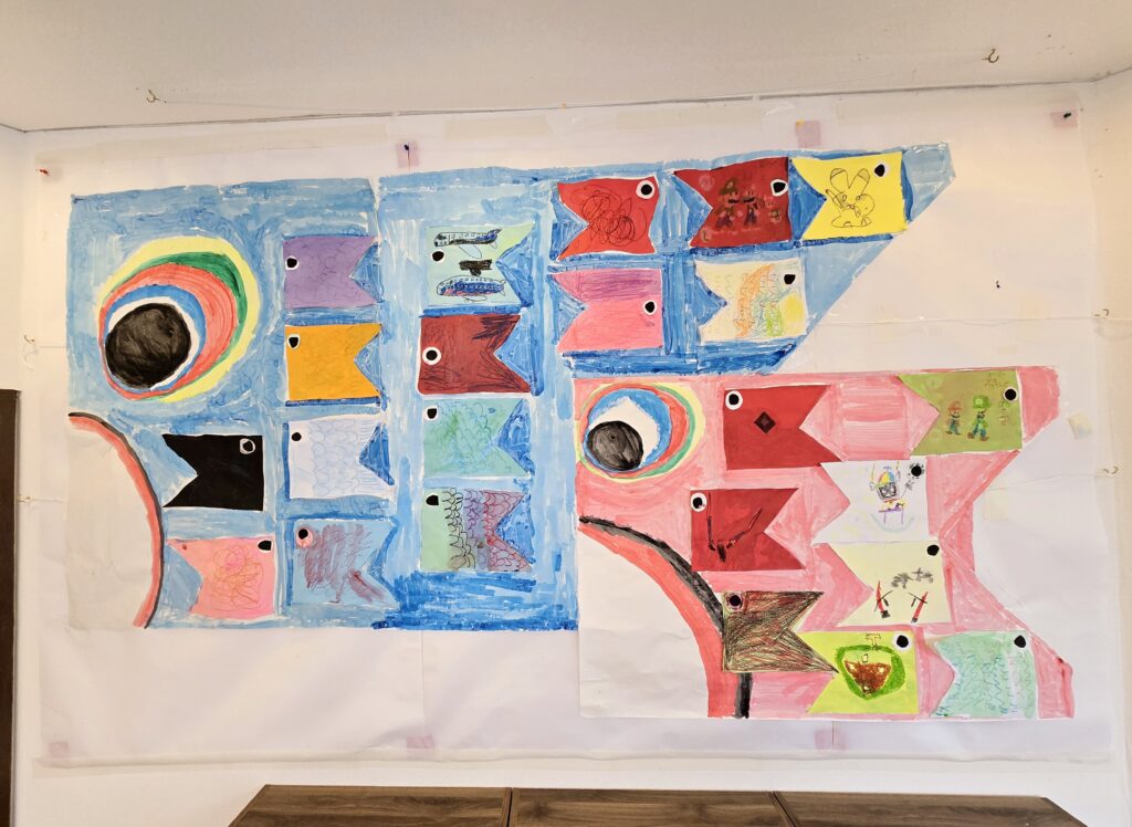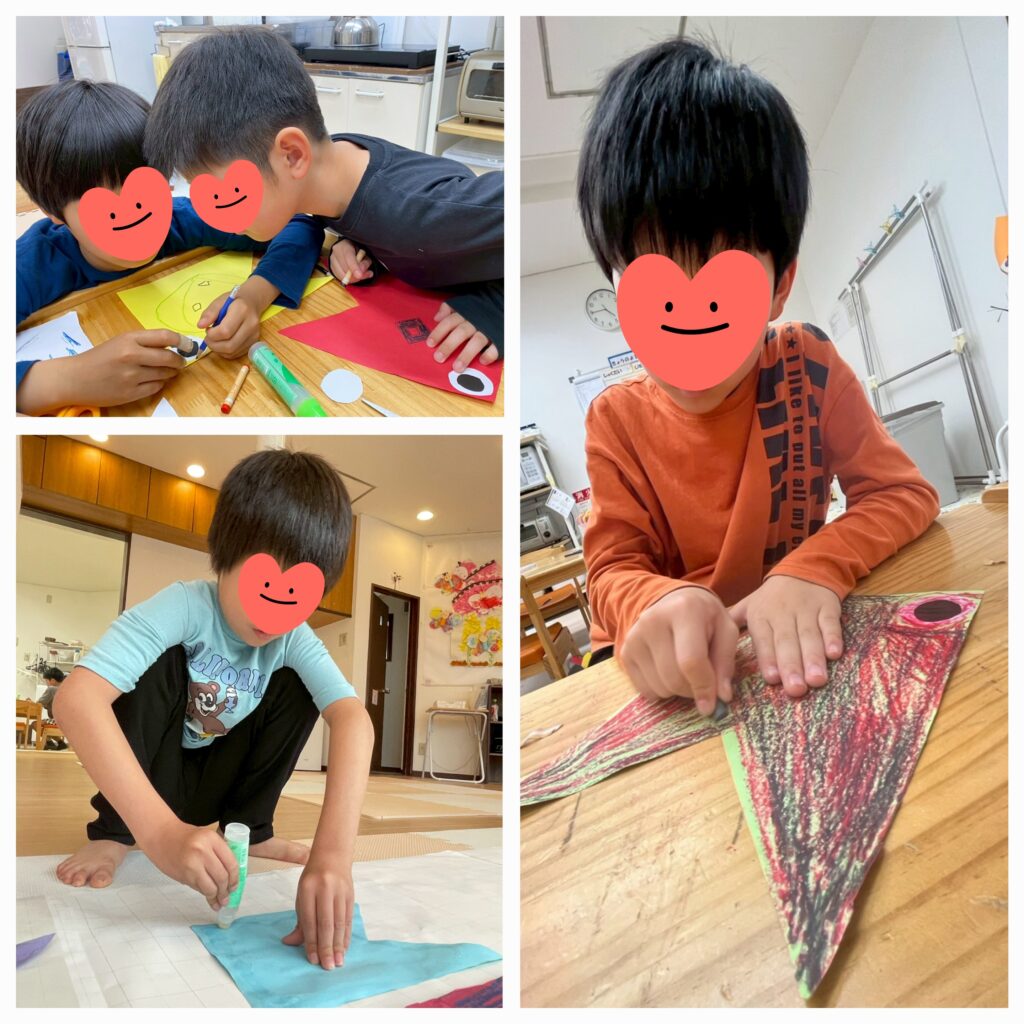 5月の壁面「こいのぼり🎏」が出来ました😊おともだち同士で見合ったり聞き合ったり、色塗りも複雑な色使いが出来るようになってきましたね~😄