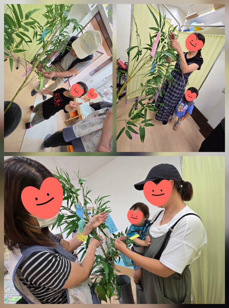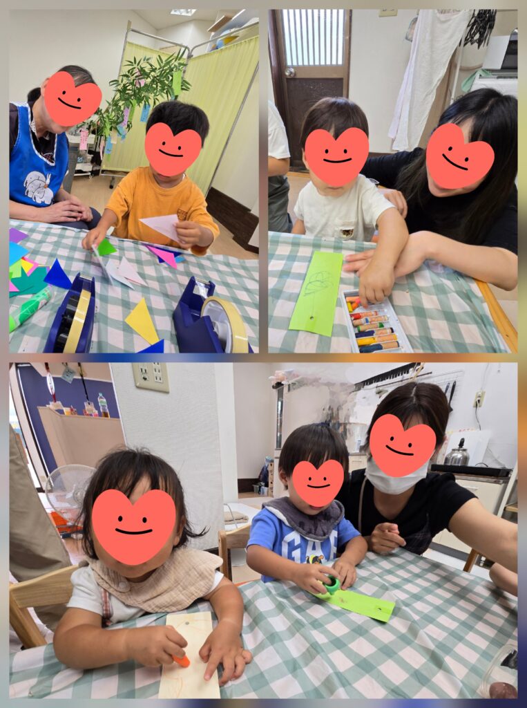 7月みんなのひろばが開催されました😊今回は笹に飾る短冊作りをしました🎋子ども達は色を塗ったりシールを貼ったり、お母さんはその横でお願いごとを書いてくれました🤗