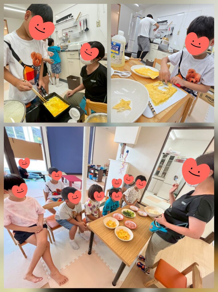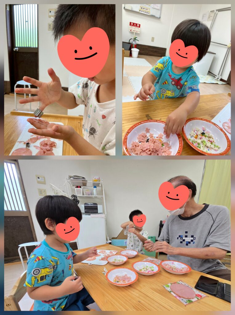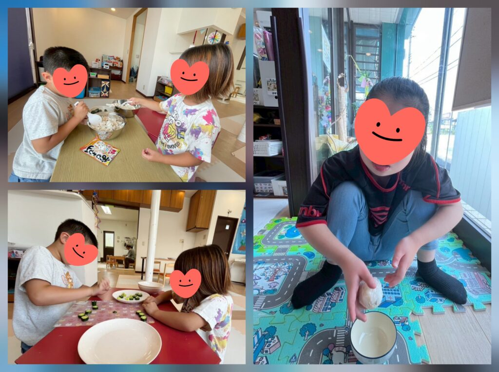 クッキングで「七夕そうめん」「おにぎり」「ベーコンと野菜の炒め物」を作りました😊