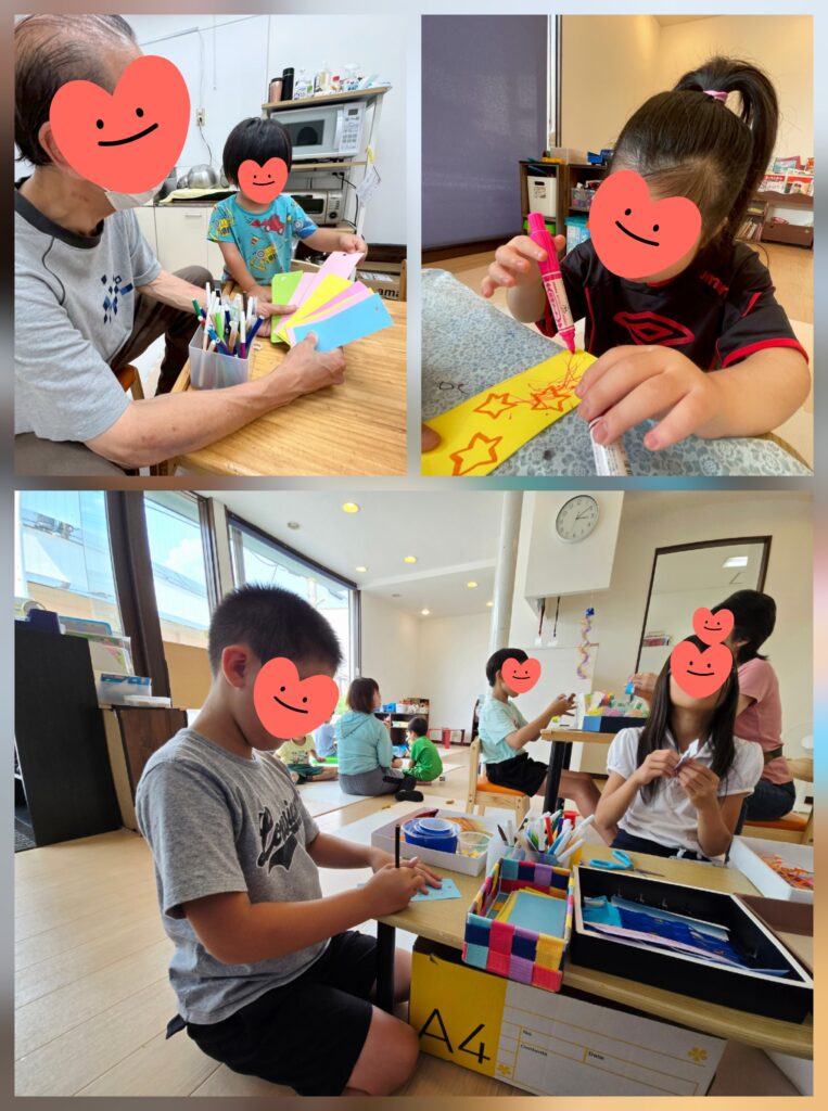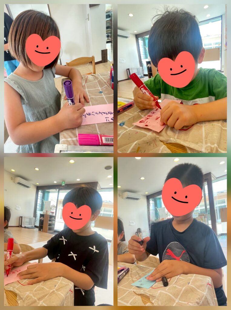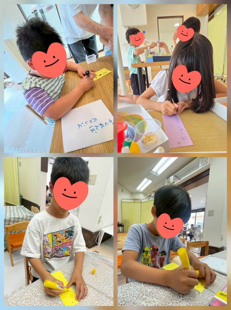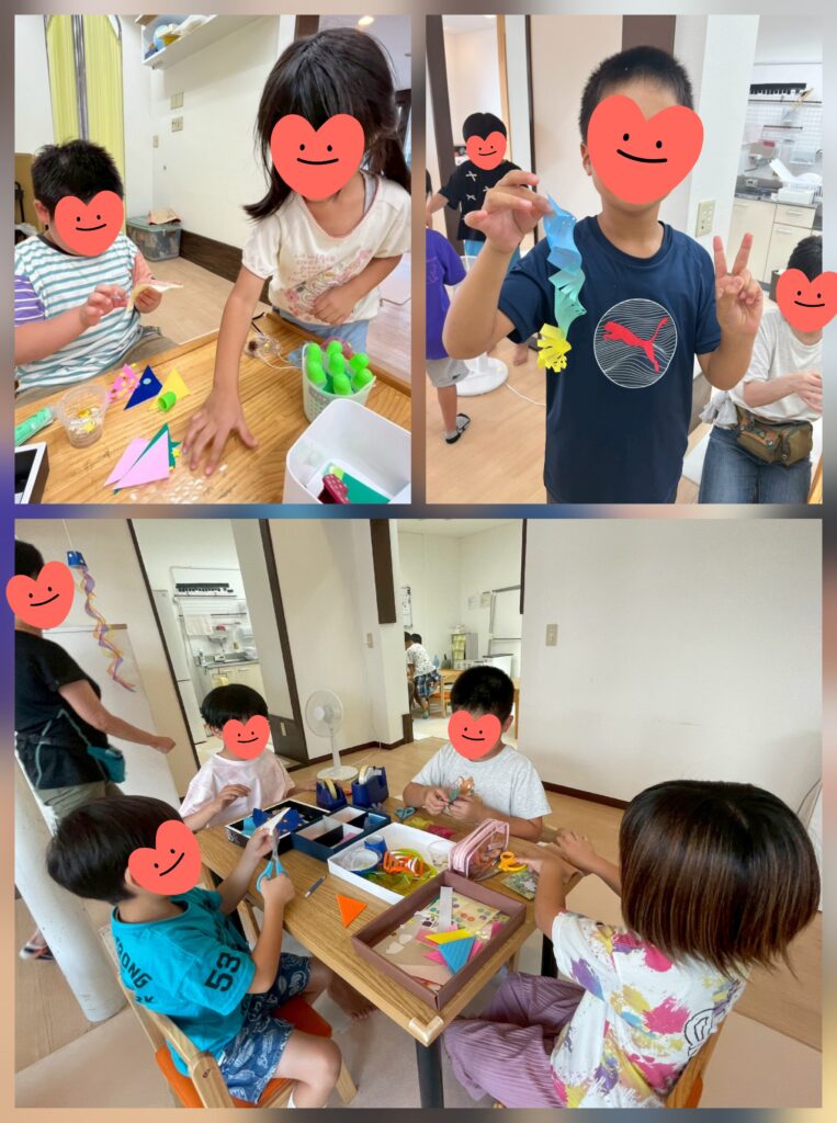 今日は七夕さまです😊短冊にねがいごとを書いてもらいました🎋「カンカンをたくさんみれますように」「ゲームがたくさんしたい」「サッカーせんしゅになりたい」「そうじがうまくなりますように」「みんながしあわせになりますように」。。線を書いてもらってなぞったり、覚えたてのひらがなで文を考えながら書いたり、周りの人の事を想ったメッセージもありました🤗