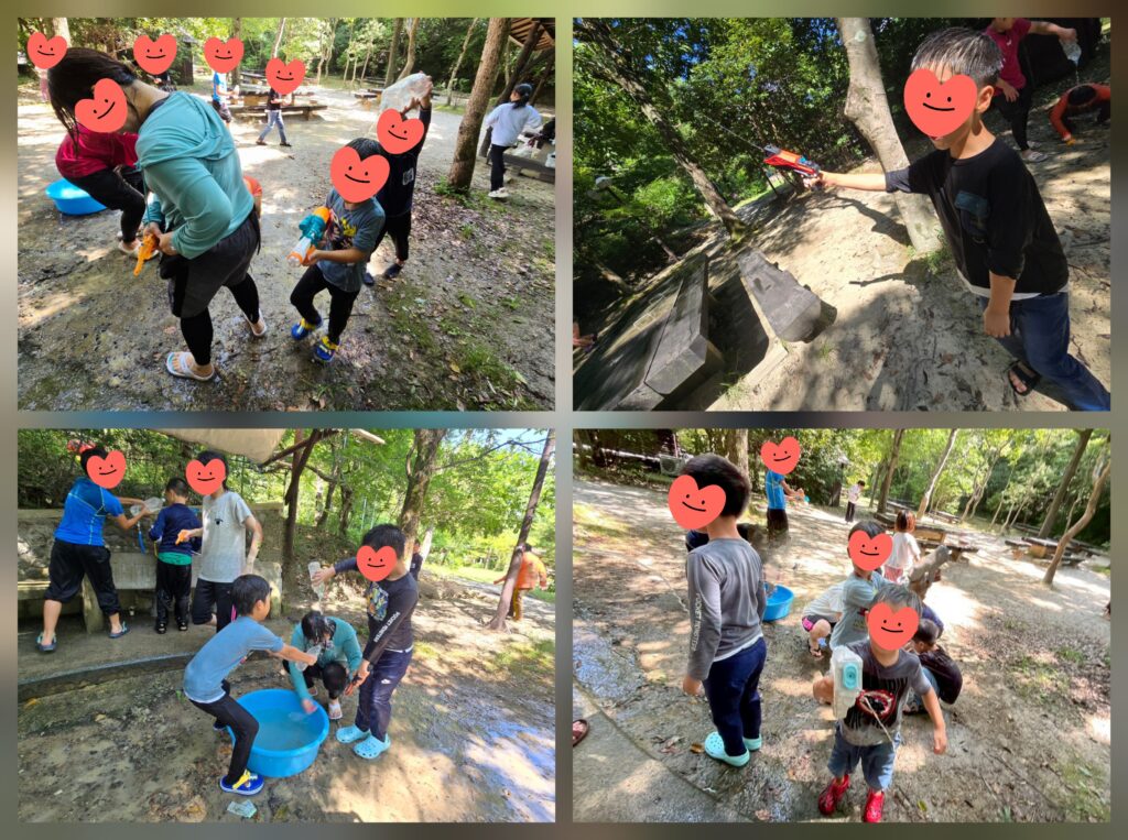 最後は毎年恒例「水遊び💙」子ども達も職員も一緒に水鉄砲やペットボトルでおもいっきり水をかけあいました~😝