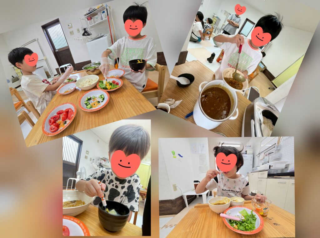 お兄ちゃん達が一皿分の量を考えながら盛りつけてくれました🙆カレーは1人ずつ自分で食べきれる量を入れてもらいました🍛