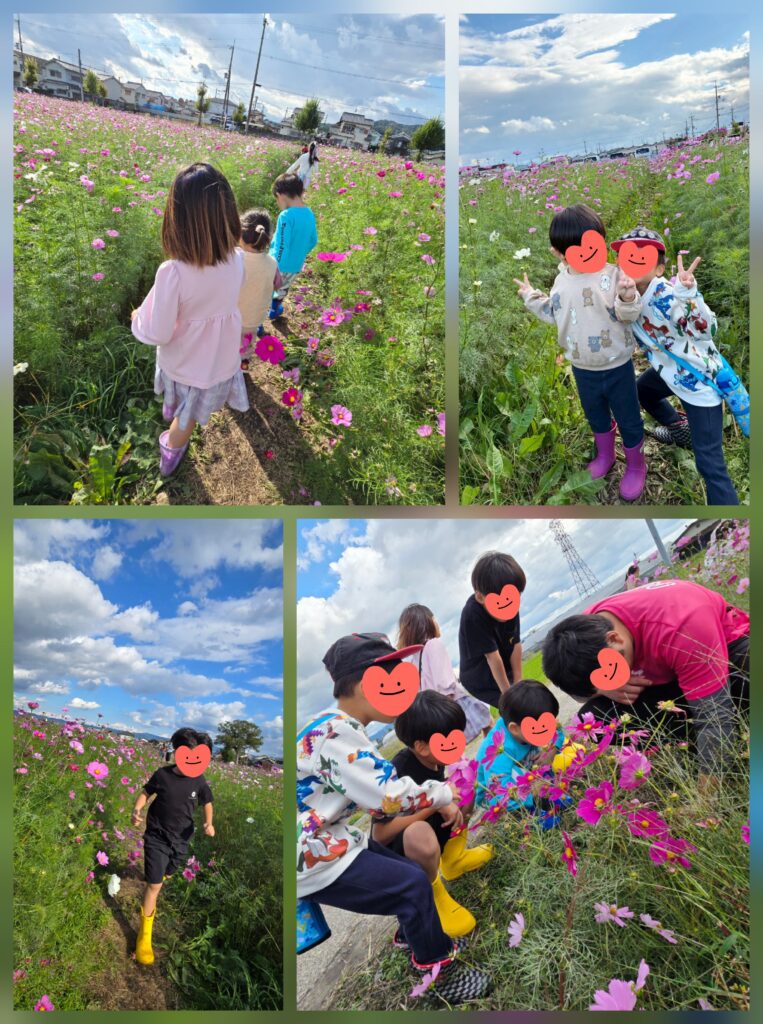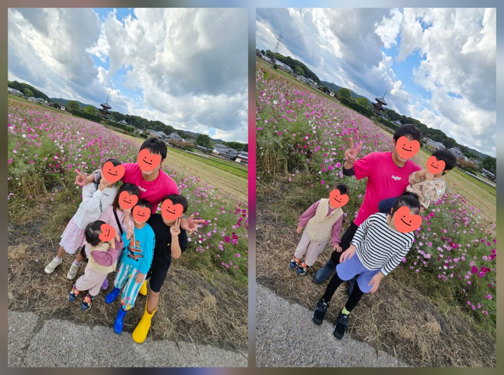 中宮寺跡歴史公園のコスモス畑は中に入ることが出来てまるで迷路のようになっています😄「こっち行けばいいの~?」「出口見えた~!」って言いながら1列になってグルグル進んでいました~🤭