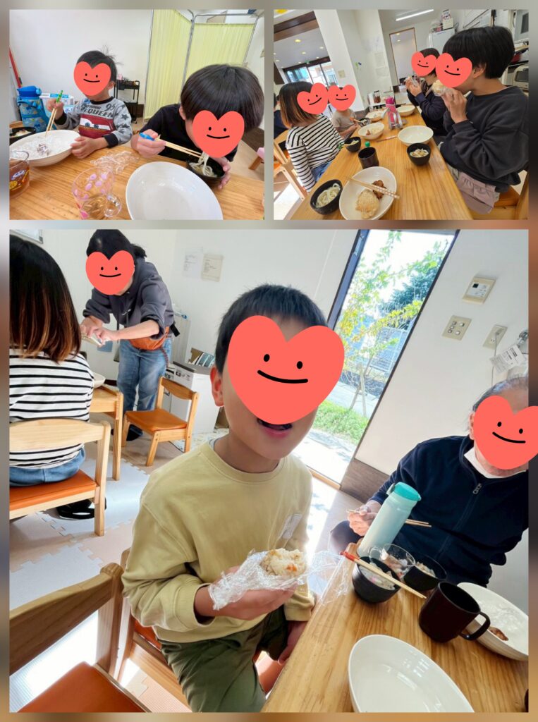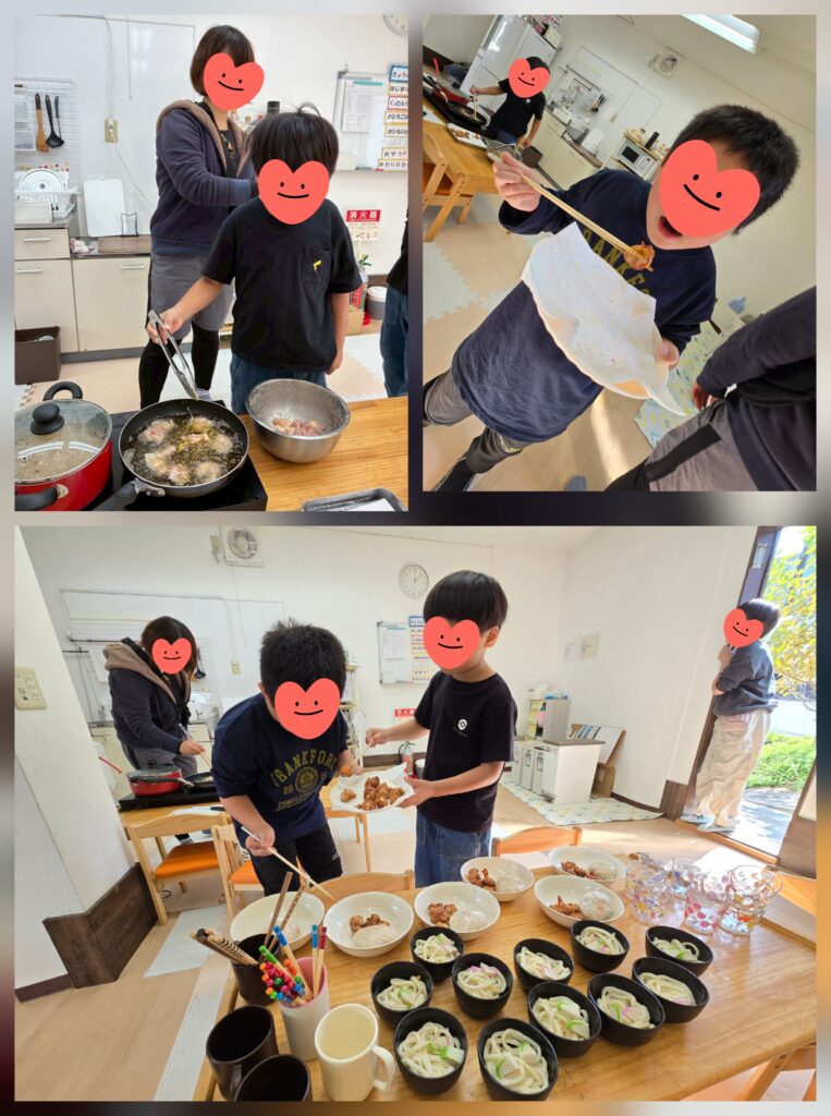昼食クッキングで「炊き込みご飯」「きつねうどん」「からあげ」を作りました😊